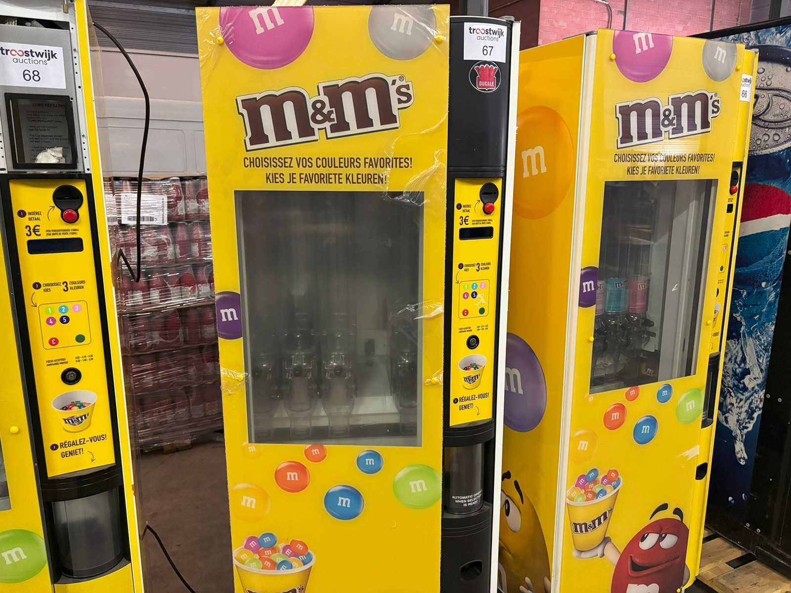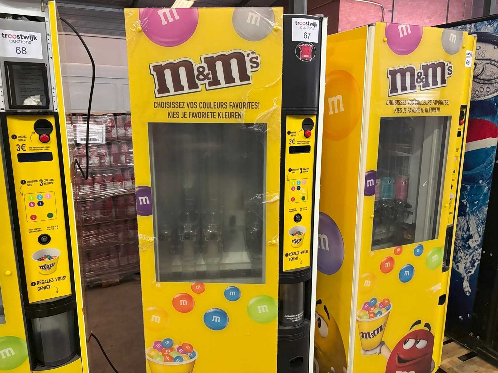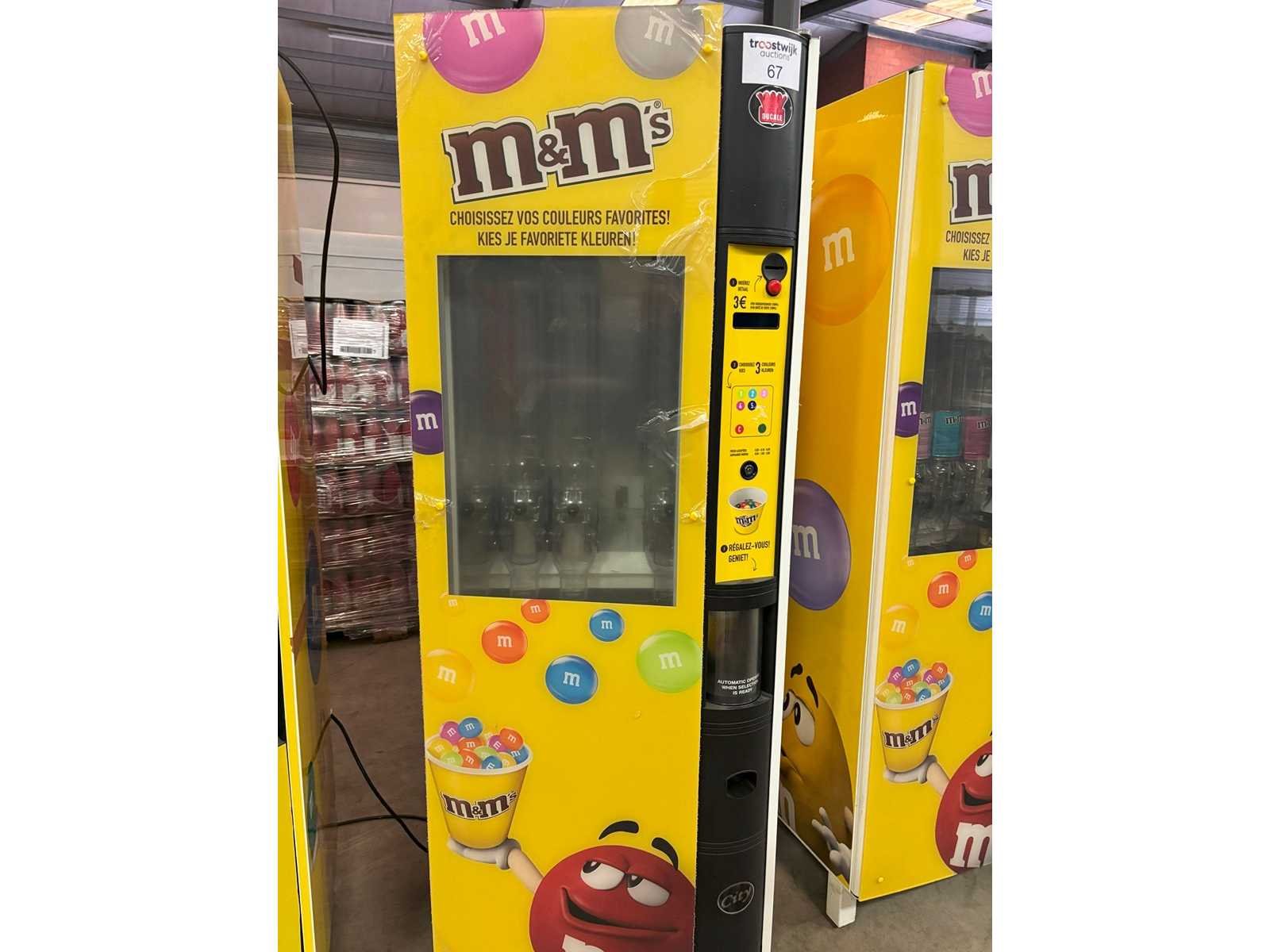 Automaat voor verkoop van M&M's of andere soorten snoep of nootjes in staat waarin toestel zich bevindt Nee Merk: Ducale Model: Bulkvendor Kleur: Geel Gewicht: 250kg Lengte: 80cm Breedte: 80cm Hoogte: 183cm