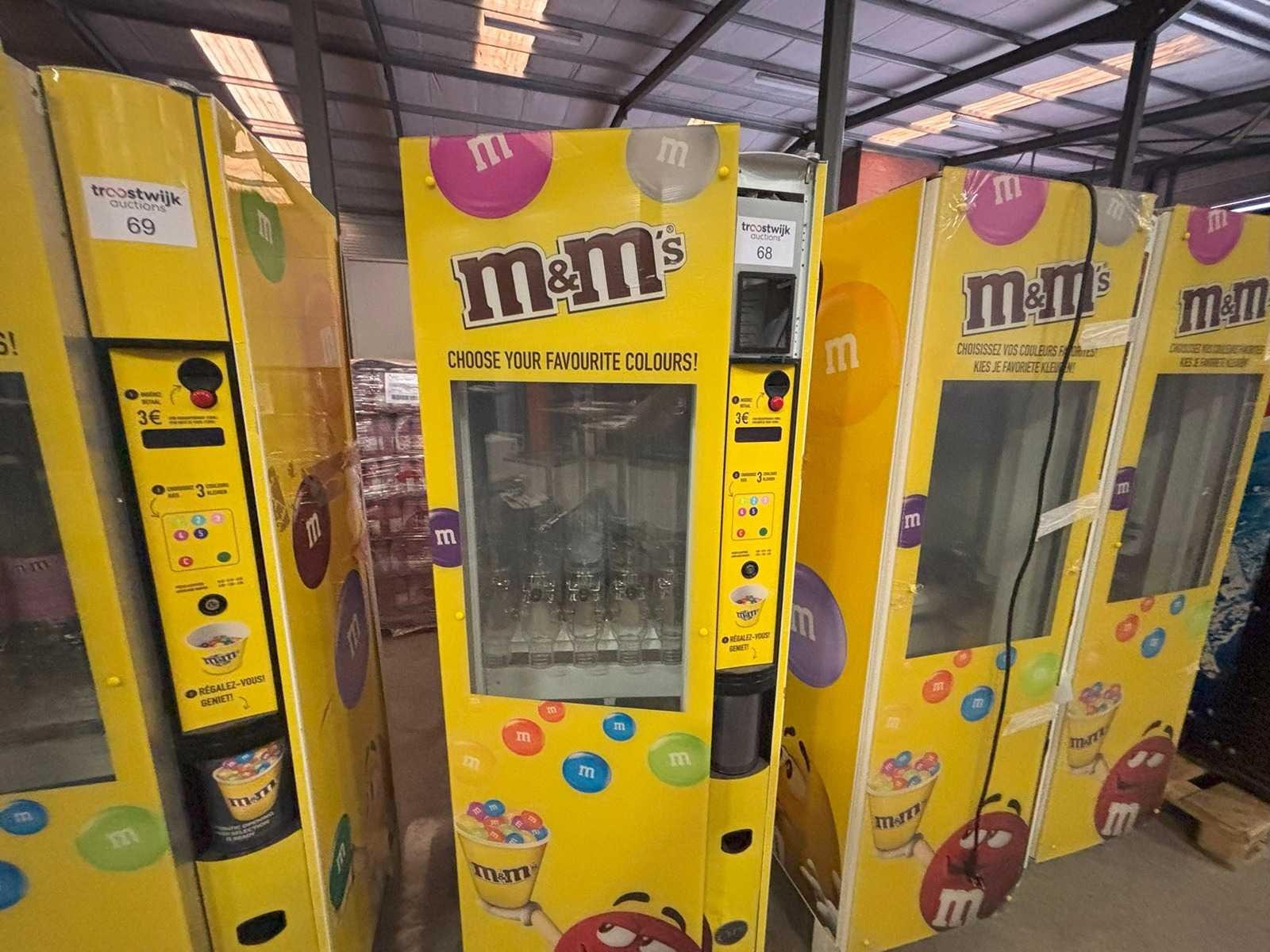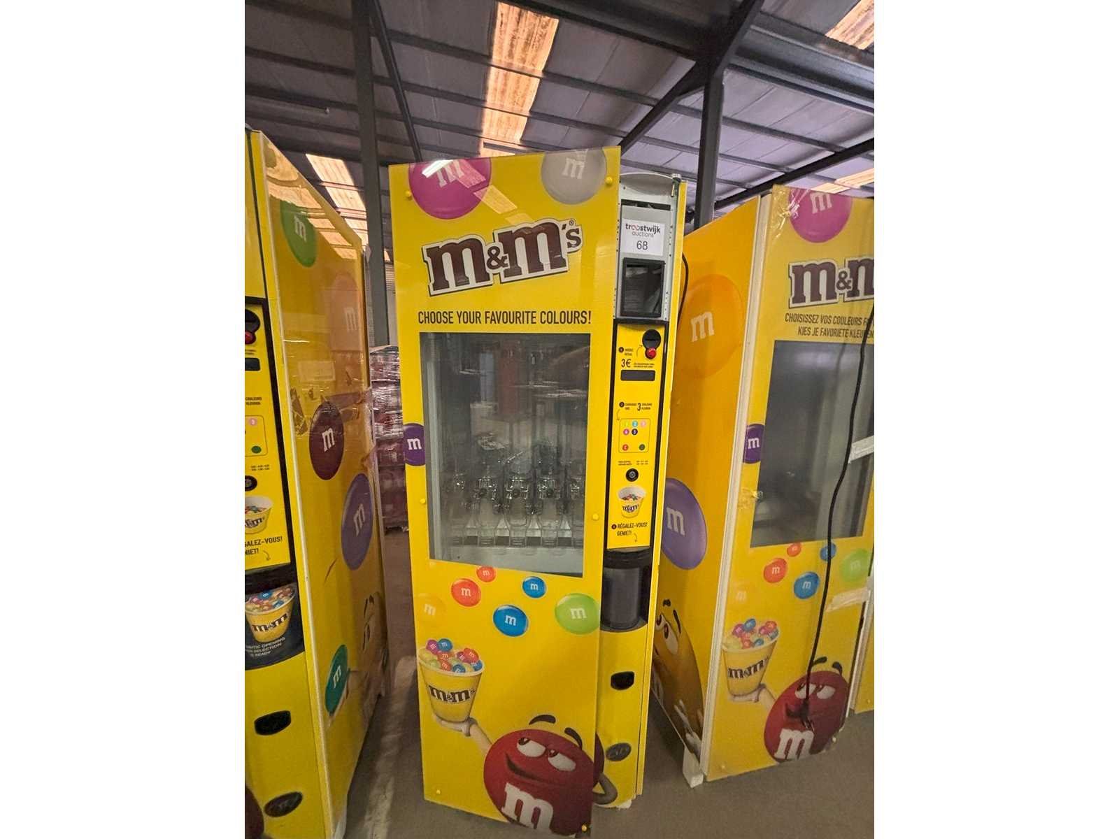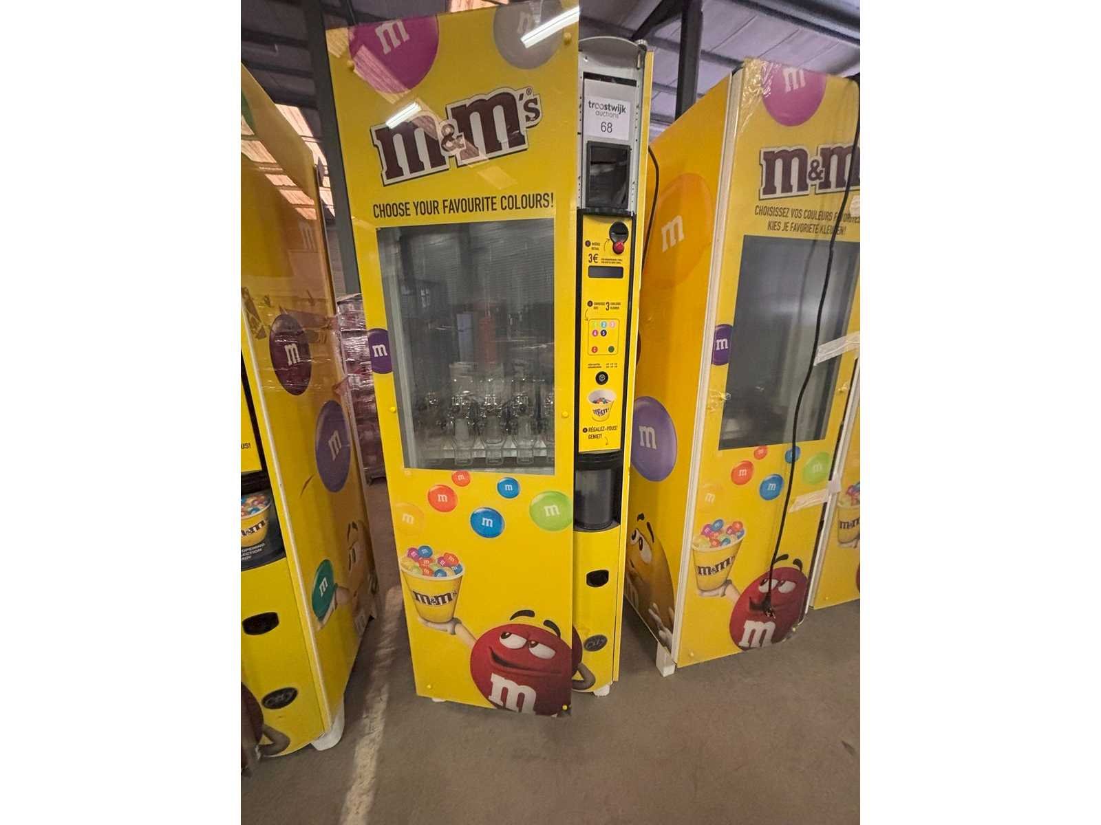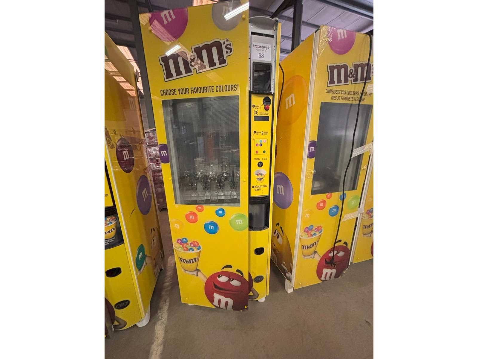 Automaat voor verkoop van M&M's of andere soorten snoep of nootjes in staat waarin toestel zich bevindt Nee Merk: Ducale Model: Bulkvendor Kleur: Geel Gewicht: 250kg Lengte: 80cm Breedte: 80cm Hoogte: 183cm