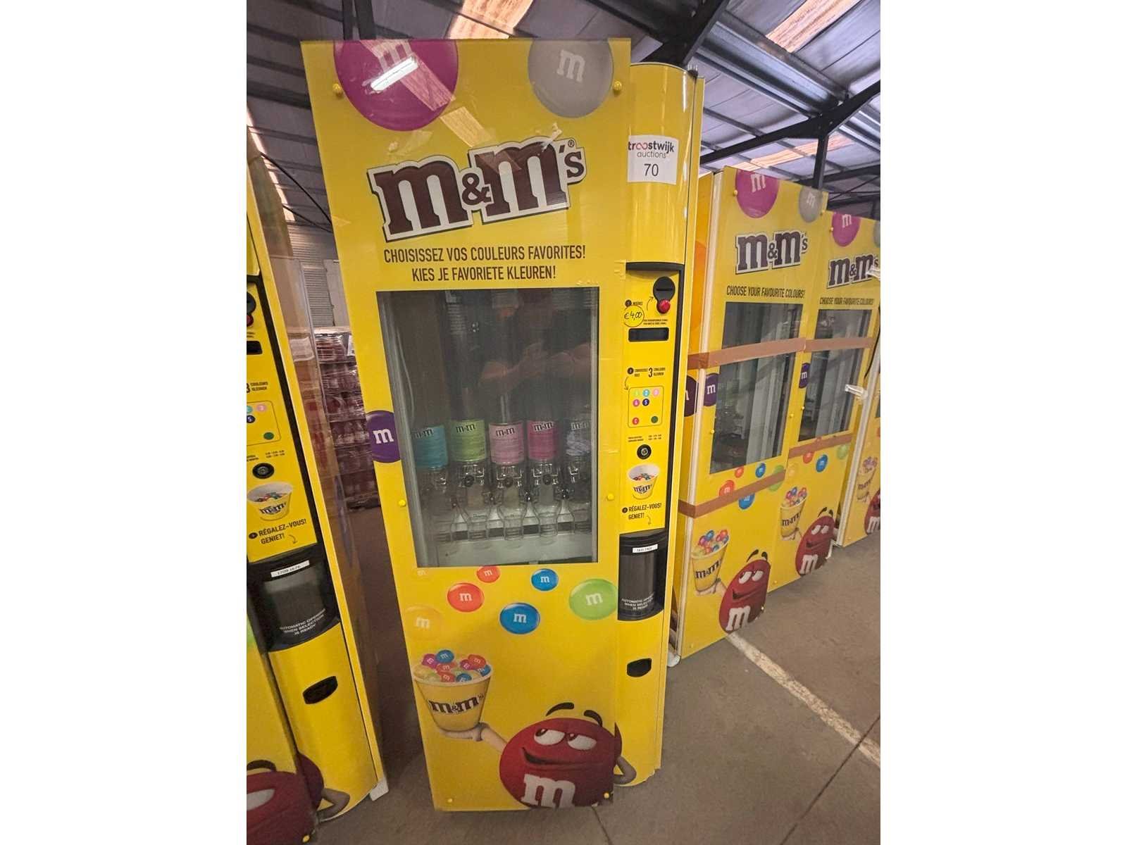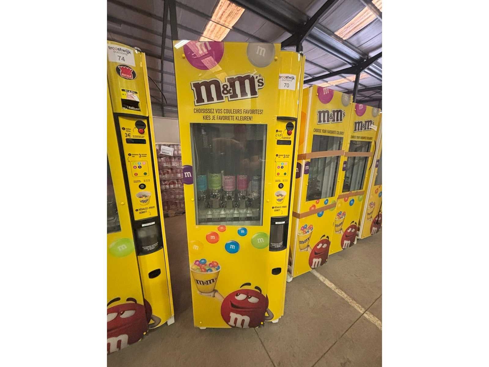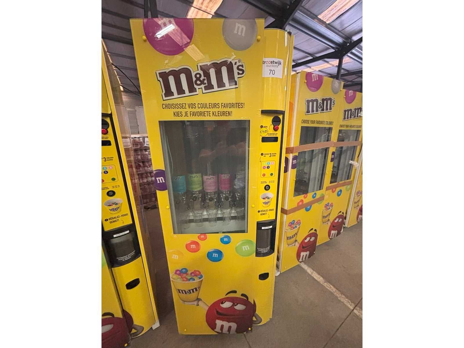 Automaat voor verkoop van M&M's of andere soorten snoep of nootjes in staat waarin toestel zich bevindt Nee Merk: Ducale Model: Bulkvendor Kleur: geel Gewicht: 250kg Lengte: 80cm Breedte: 80cm Hoogte: 183cm