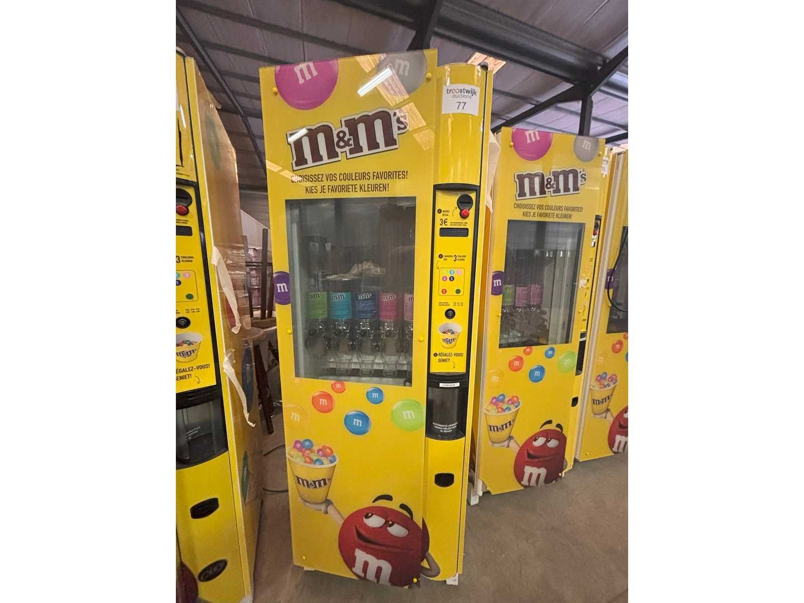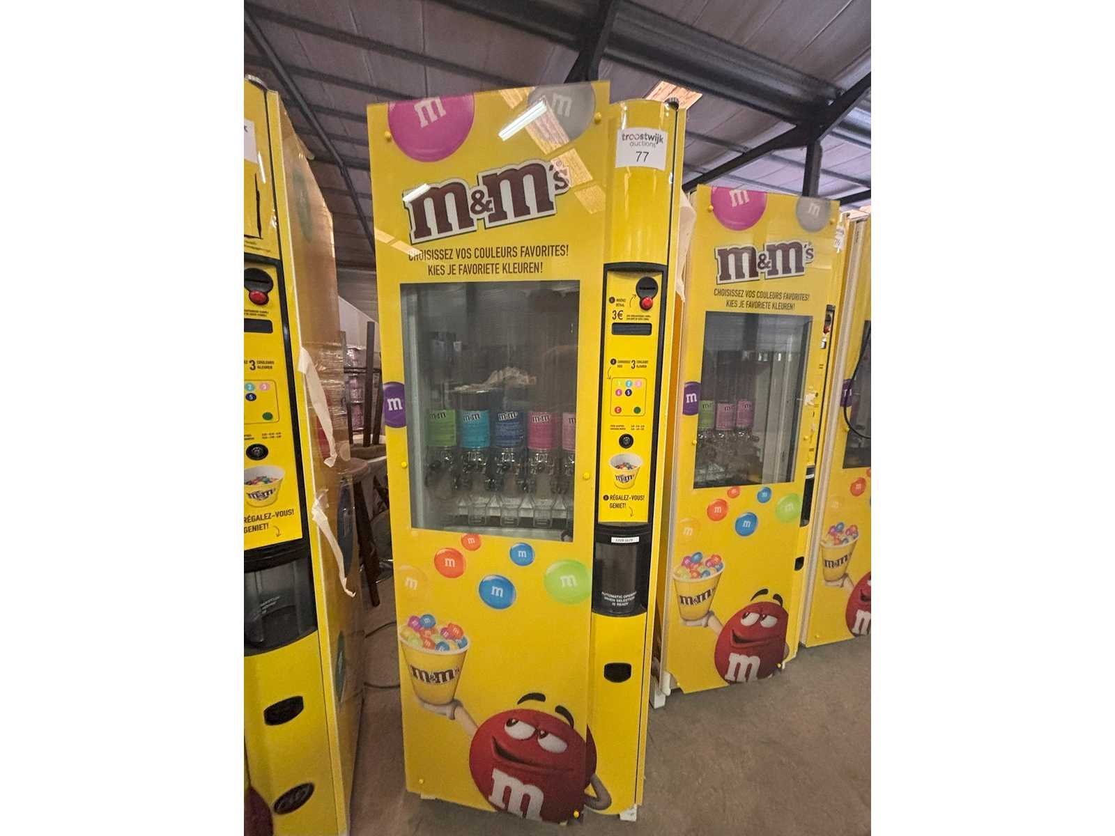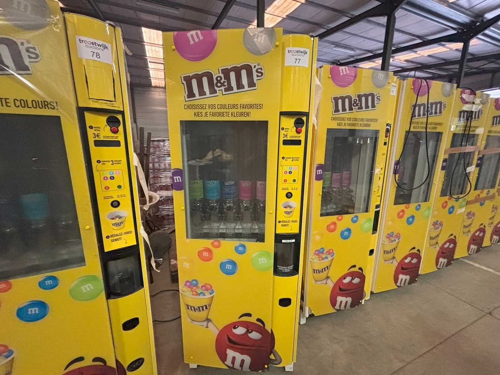 Automaat voor verkoop van M&M's of andere soorten snoep of nootjes in staat waarin toestel zich bevindt Nee Merk: Ducale Model: Bulkvendor Kleur: geel Gewicht: 250kg Lengte: 80cm Breedte: 80cm Hoogte: 183cm