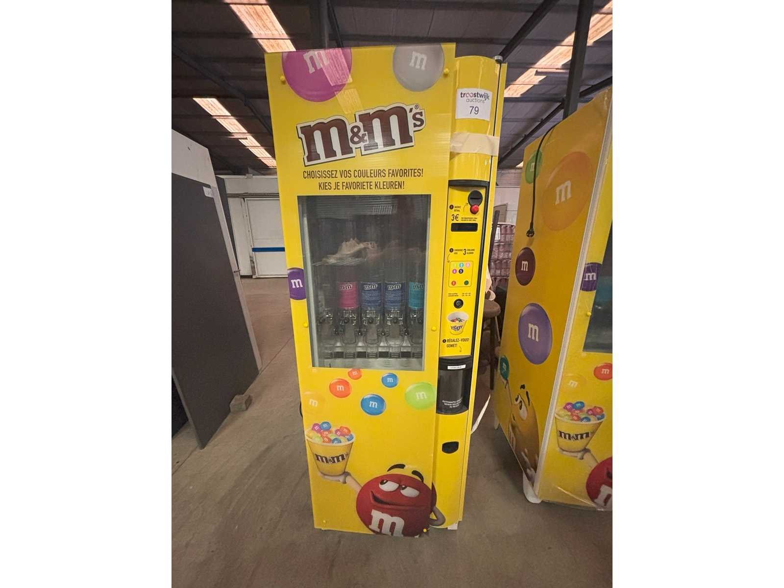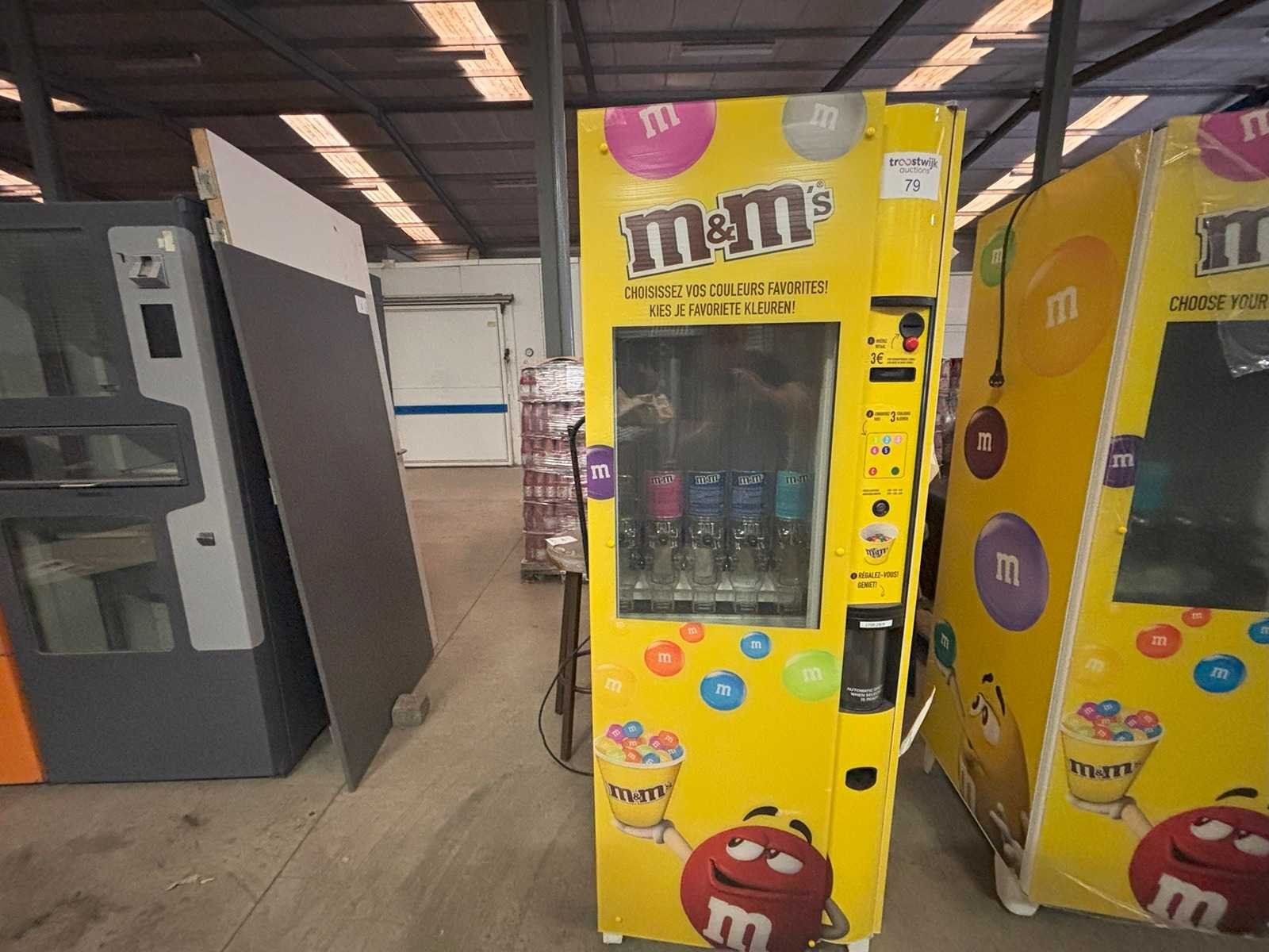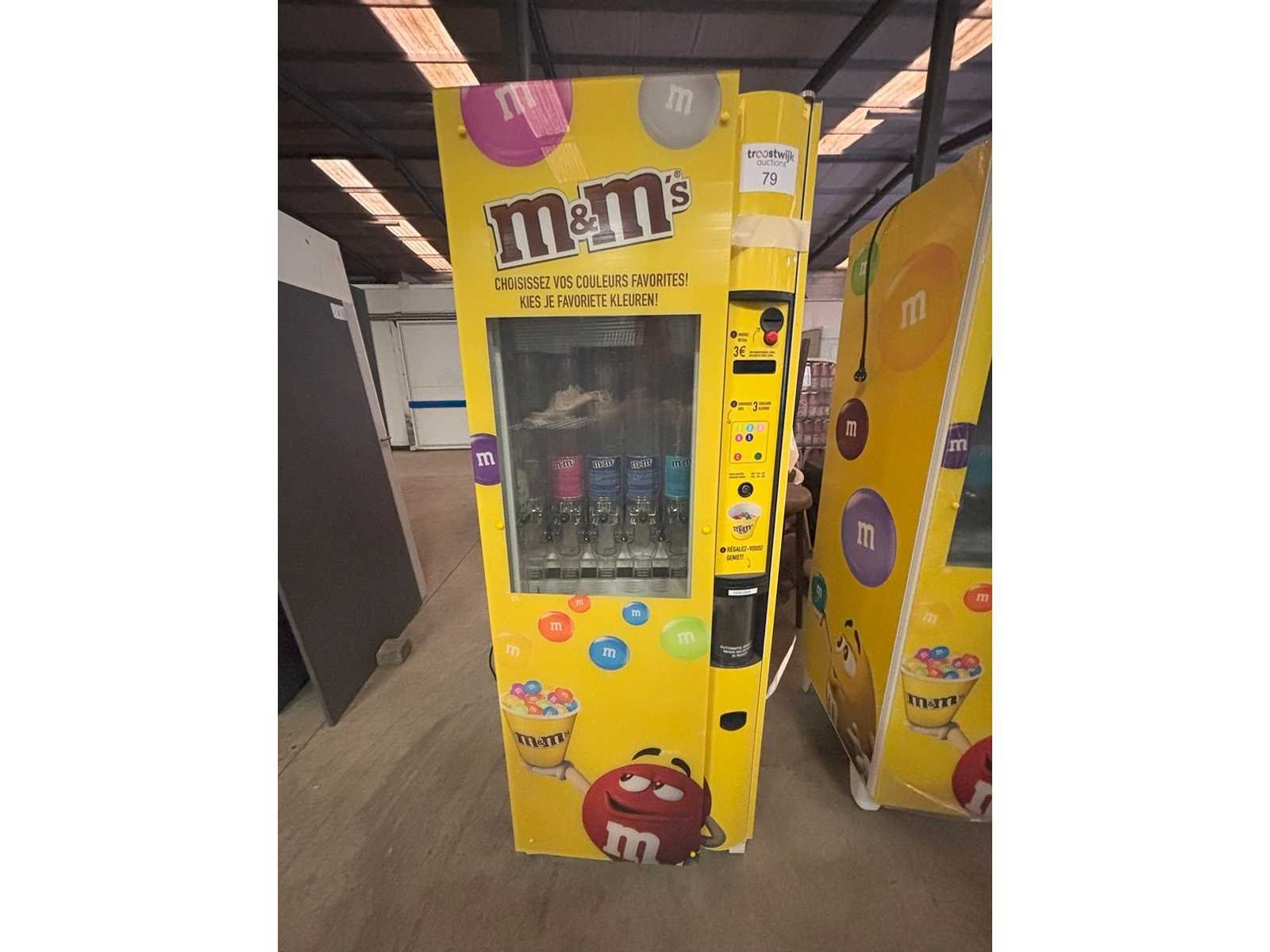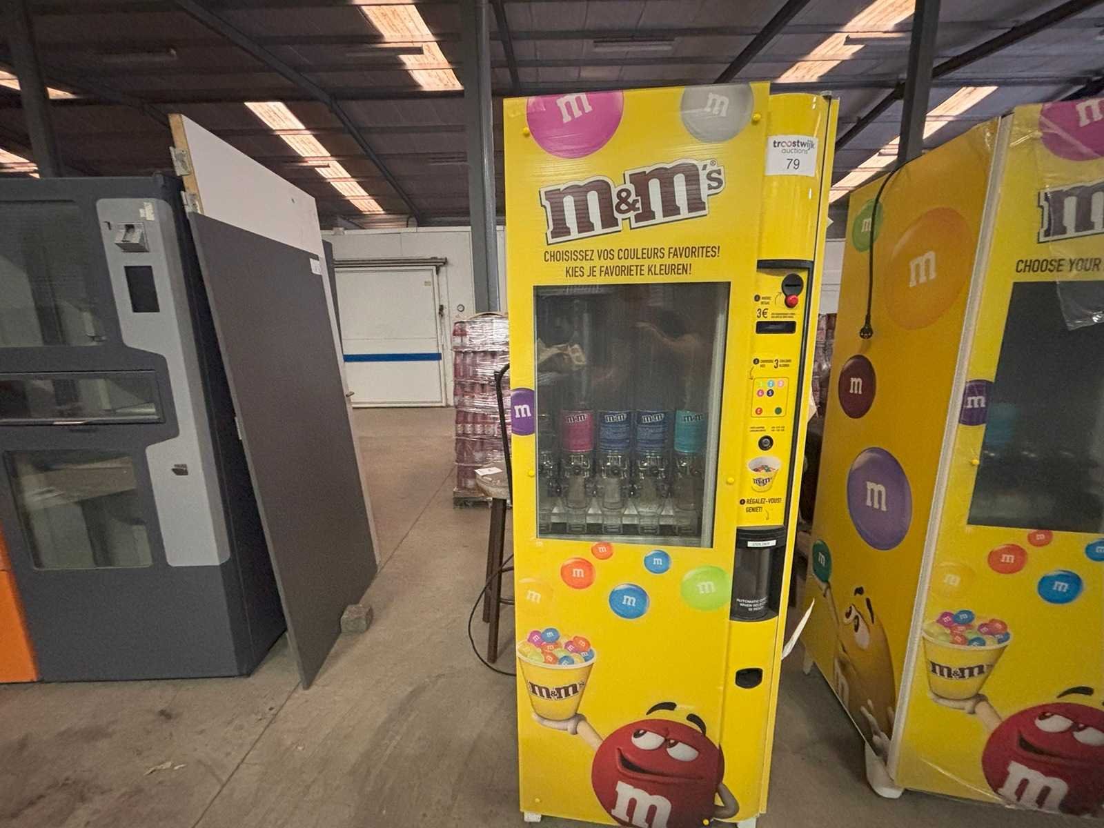 Automaat voor verkoop van M&M's of andere soorten snoep of nootjes in staat waarin toestel zich bevindt Nee Merk: Ducale Model: Bulkvendor Kleur: Geel Gewicht: 250kg Lengte: 80cm Breedte: 80cm Hoogte: 183cm