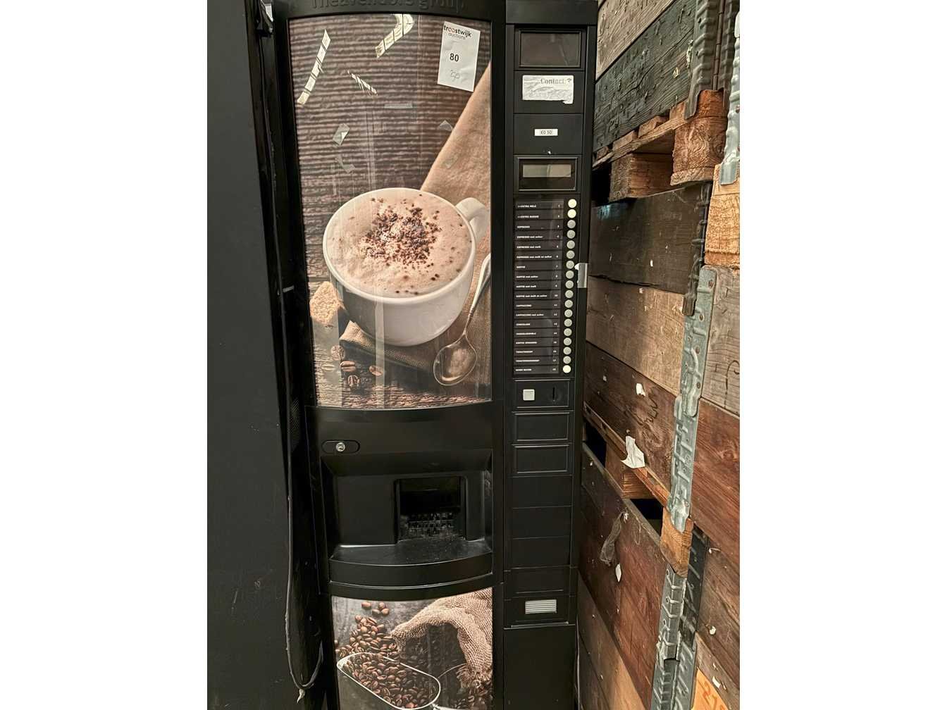 Standalone koffieautomaatin, staat waarin toestel zich bevindt No Merk: Rheavendor Model: koffie Gewicht: 300kg Lengte: 80cm Breedte: 80cm Hoogte: 183cm