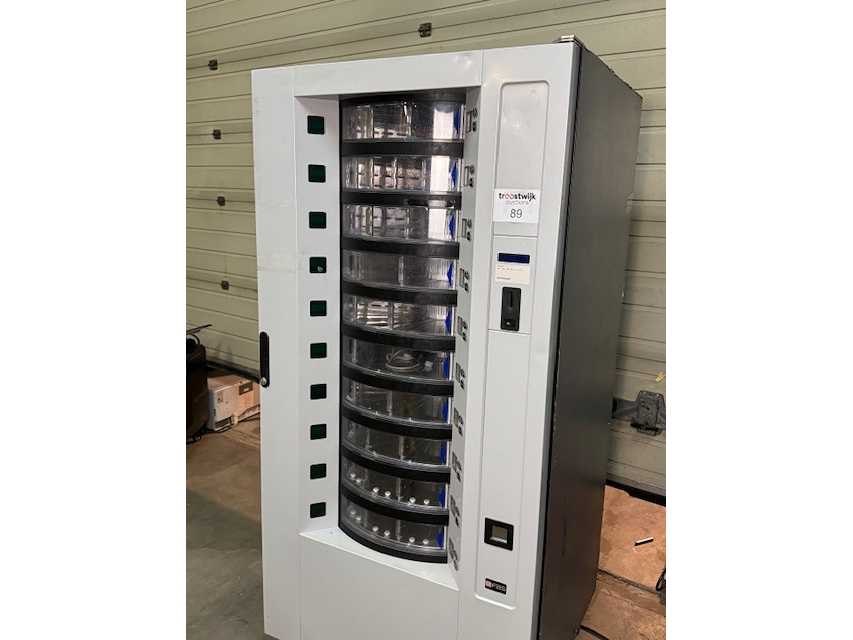 Voedingsautomaat met 10 selecties geschikt voor verkoop van diverse producten zoals verse voeding, maaltijden en fruit in staat waarin goed zich bevindt Nee Merk: FAS Model: EASY VEND Kleur: Grijs Gewicht: 315kg Lengte: 910cm Breedte: 790cm Hoogte: 183cm