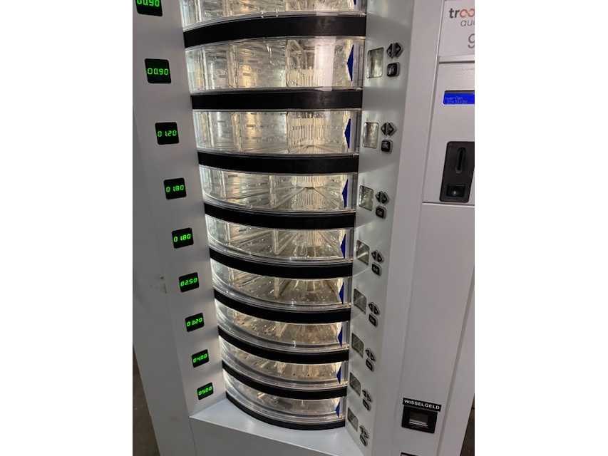 Voedingsautomaat met 10 selecties geschikt voor verkoop van diverse producten zoals verse voeding, maaltijden en fruit in staat waarin goed zich bevindt Nee Merk: FAS Model: EASY VEND Kleur: Grijs Gewicht: 315kg Lengte: 910cm Breedte: 790cm Hoogte: 183cm