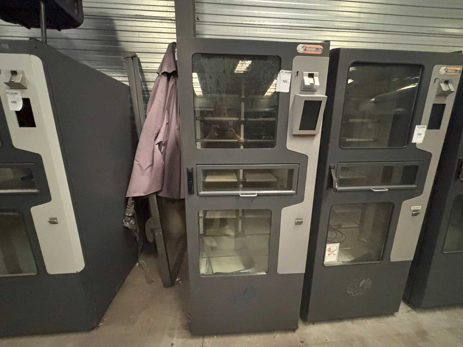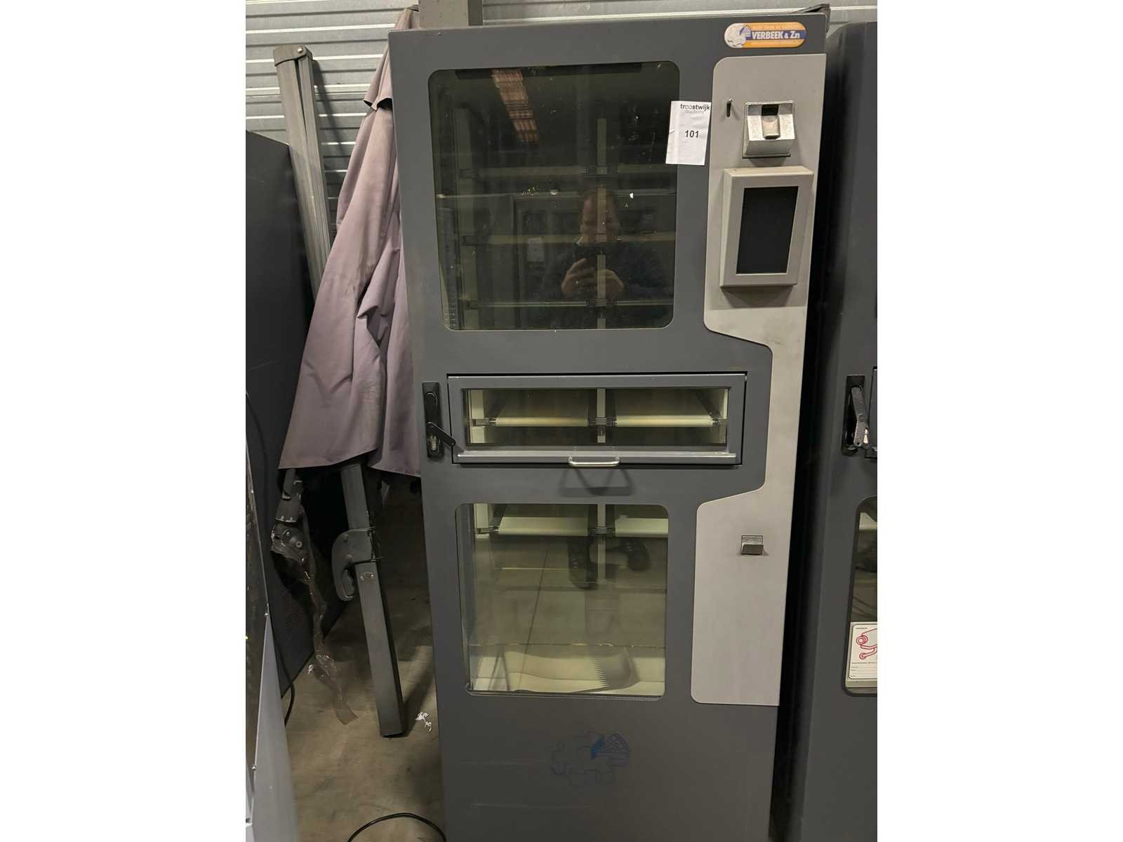 Broodautomaat met lift en zeer grote capaciteit Iin staat waarin toestel zich bevindt Nee Merk: V90 Model: Brood & voeding Gewicht: 550kg Lengte: 220cm Breedte: 100cm Hoogte: 190cm