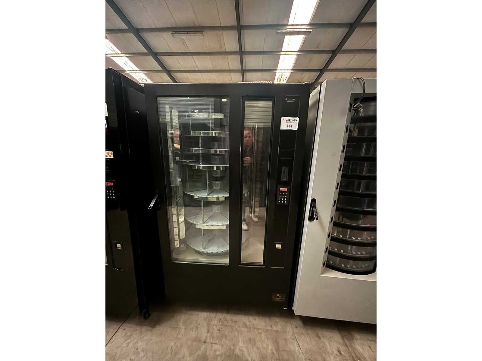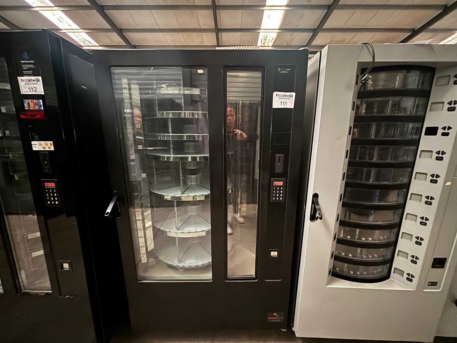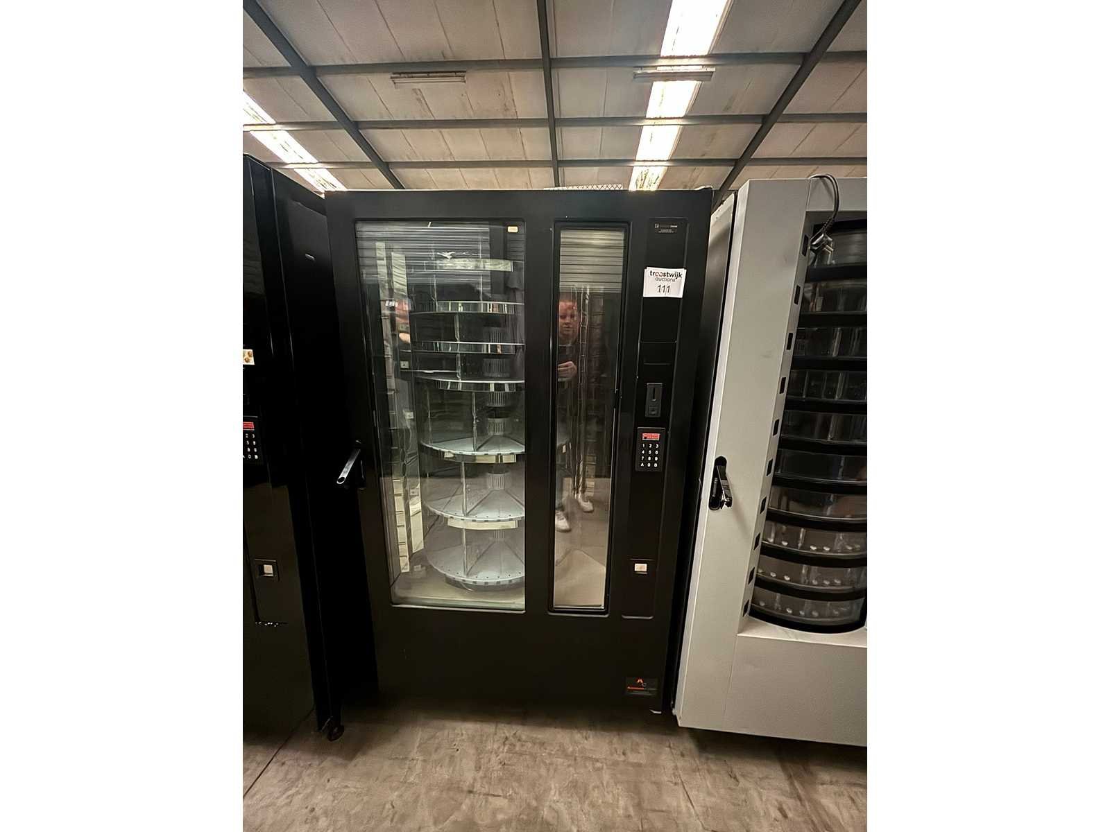 Voedingsautomaat met 10 plateaus voor de verkoop van maaltijden, verse voeding, fruit en diverse goederen in staat waarin goed zich bevindt Nee Merk: FAS Model: 480/10 Gewicht: 275kg Lengte: 104cm Breedte: 76cm Hoogte: 183cm