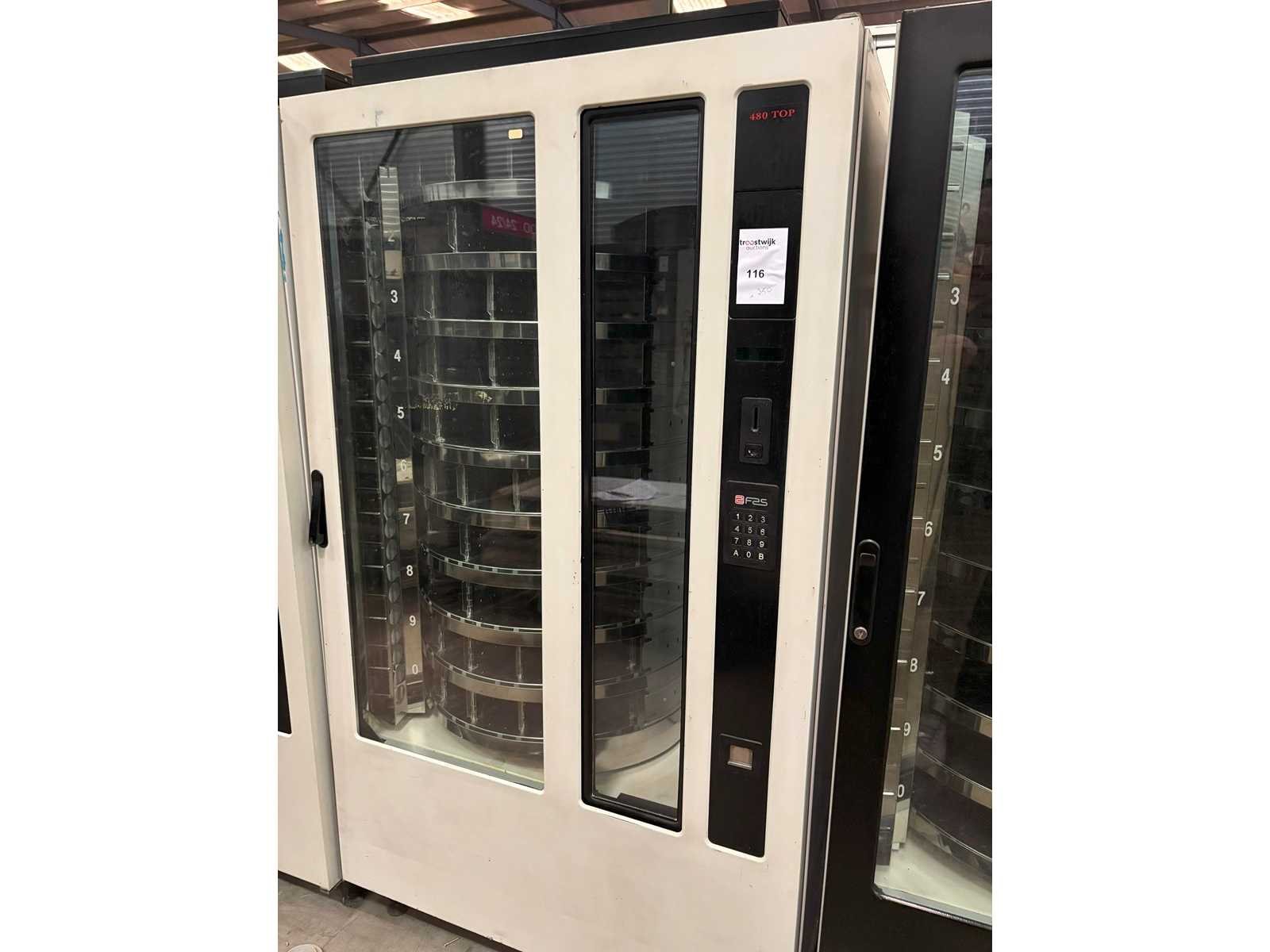 Voedingsautomaat met 10 plateaus voor verkoop van diverse producten, In staat waarin toestel zich bevindt Nee Merk: FAS Model: 480/10 Gewicht: 290kg Lengte: 105cm Breedte: 80cm Hoogte: 183cm