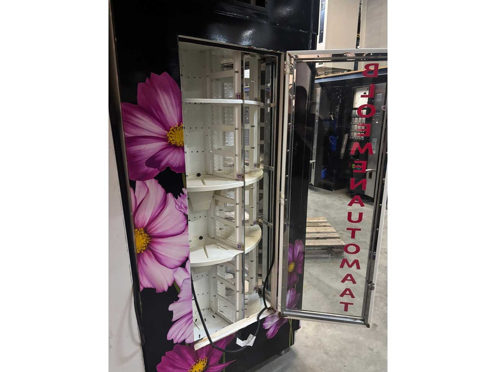 Bloemenautomaat met 4 selecties met zijdeur in staat waarin goed zich bevindt Nee Merk: Bloemenautomaat Gewicht: 400kg Lengte: 100cm Breedte: 100cm Hoogte: 200cm