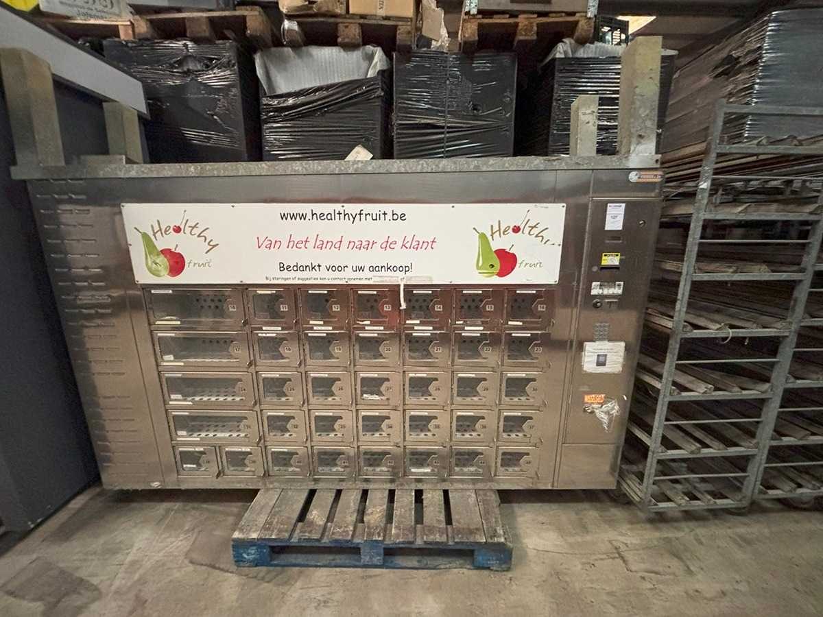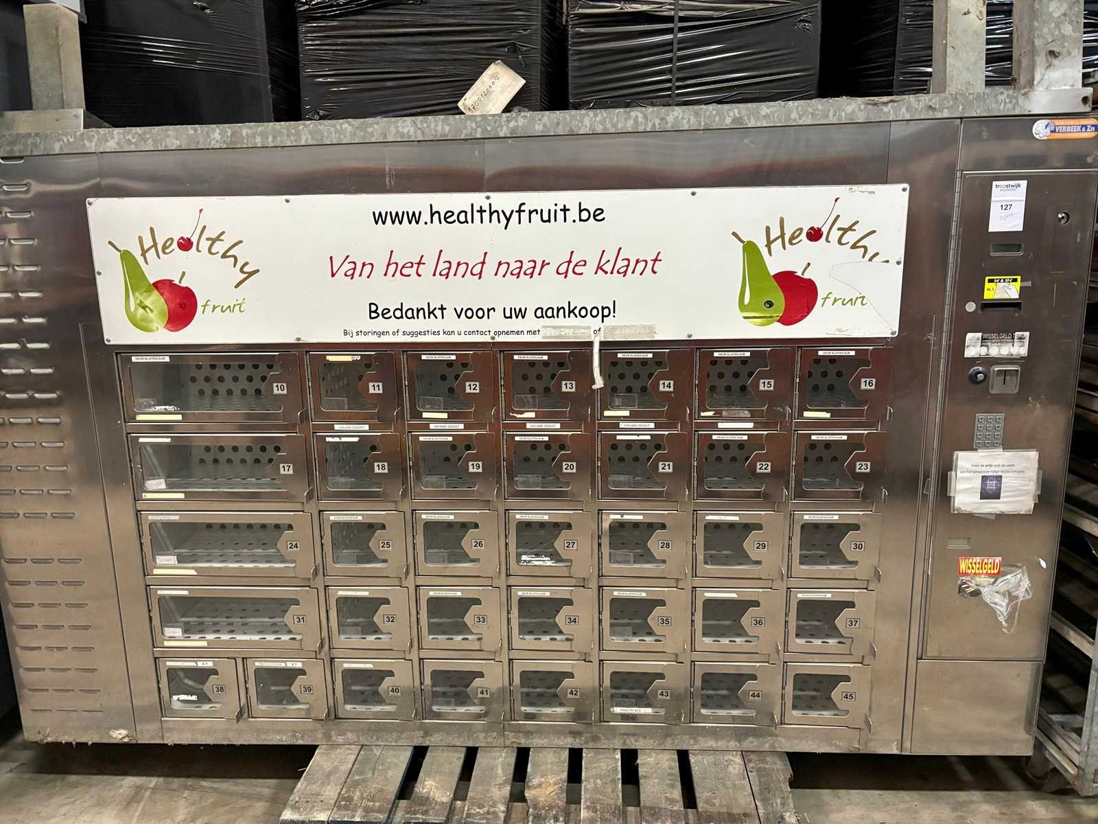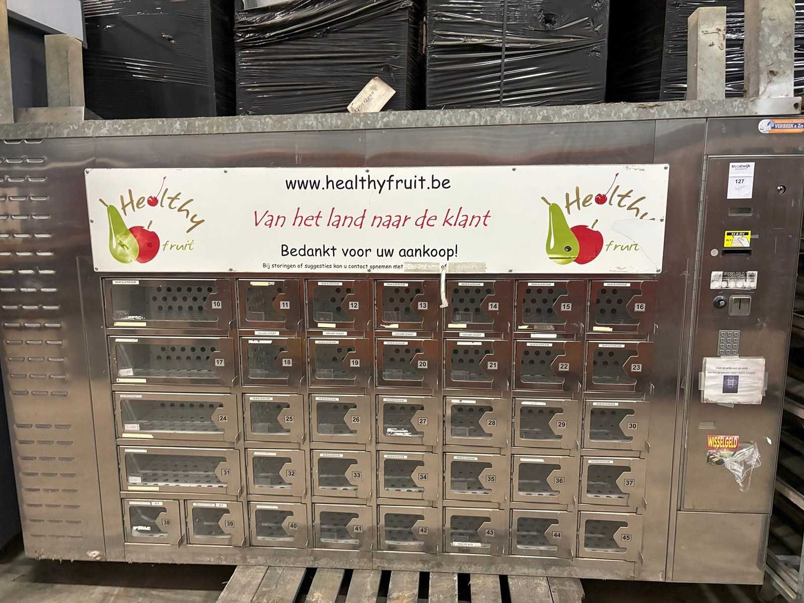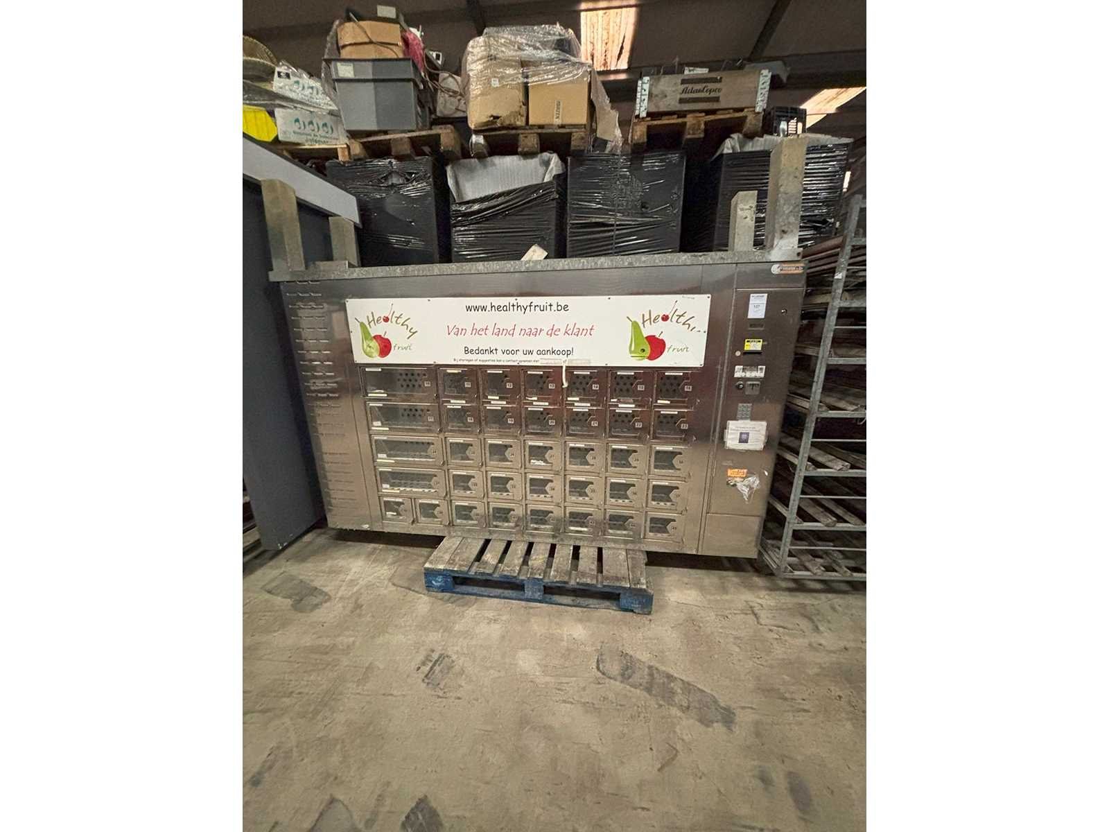 Lockerautomaat met 35 vakken op voet geschikt voor de verkoop van fruit en groenten, in staat waarin toestel zich bevindt Nee Merk: Roesler Model: 35 vak Gewicht: 550kg Lengte: 300cm Breedte: 60cm Hoogte: 183cm