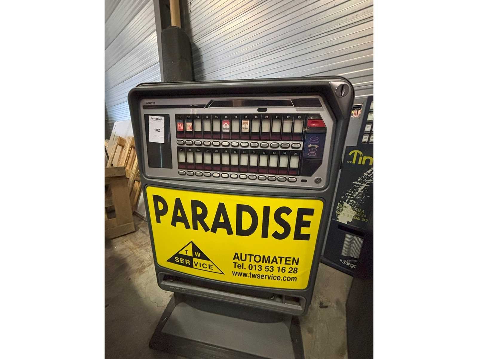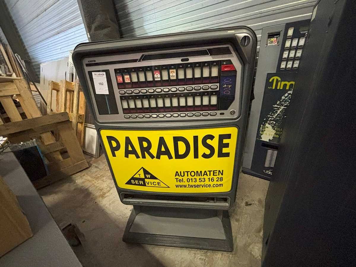 Sigarettenautomaat met biljetlezer in staat waarin toestel zich bevindt No Merk: Azkoyen Model: N87 D Gewicht: 150kg Lengte: 100cm Breedte: 40cm Hoogte: 160cm