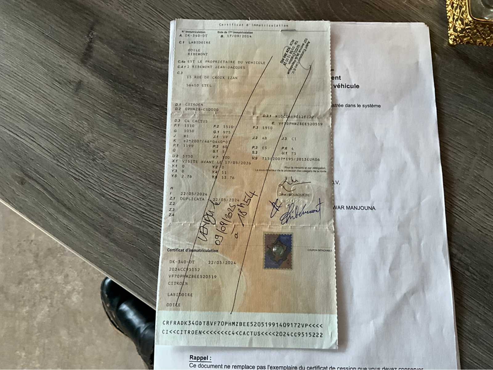 Nee Merk: Citroën Model: C4 Cactus Bouwjaar: 2014 Cilinderinhoud: 1560cc Vermogen (kW): 73kW Brandstof: diesel Chassisnummer: VF7OPHWZBEE520519 Datum eerste toelating: 17/09/2014 Vermogen (pk): 99hp Aantal zitplaatsen: 5 Transmissie: Automaat Aantal deuren: 5 Aantal sleutels: 2 Nationaliteit documenten: Frans Start en rijdt: Ja startinformatie : Start & rijdt Vavato voert geen technische keuring uit.: true Navigatie: true