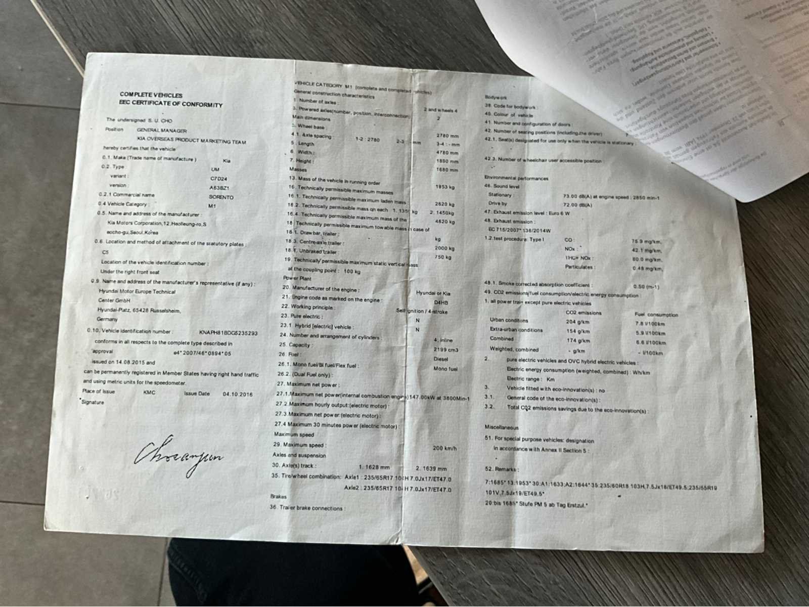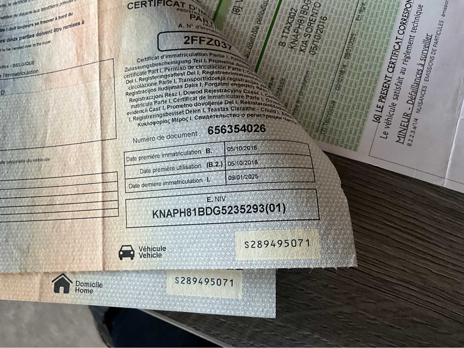 Nee Merk: Kia Model: Sorento Bouwjaar: 2016 Afgelezen kilometerstand: 184000km Cilinderinhoud: 2199cc Vermogen (kW): 147kW Brandstof: diesel Chassisnummer: KNAPH81BDG5235293 Datum eerste toelating: 05/10/2016 Aantal zitplaatsen: 7 Transmissie: Automaat Emissieklasse: Euro 6b Aantal sleutels: 2 Nationaliteit documenten: Belgisch Start en rijdt: Ja Keuringsrapport geldig tot: 09/01/2026 startinformatie : Start & rijdt Vavato voert geen technische keuring uit.: true Airconditioning: true Navigatie: true Leder bekleed: true Inschrijvingsbewijs - deel 1 : Aanwezig Inschrijvingsbewijs - deel 2: Aanwezig