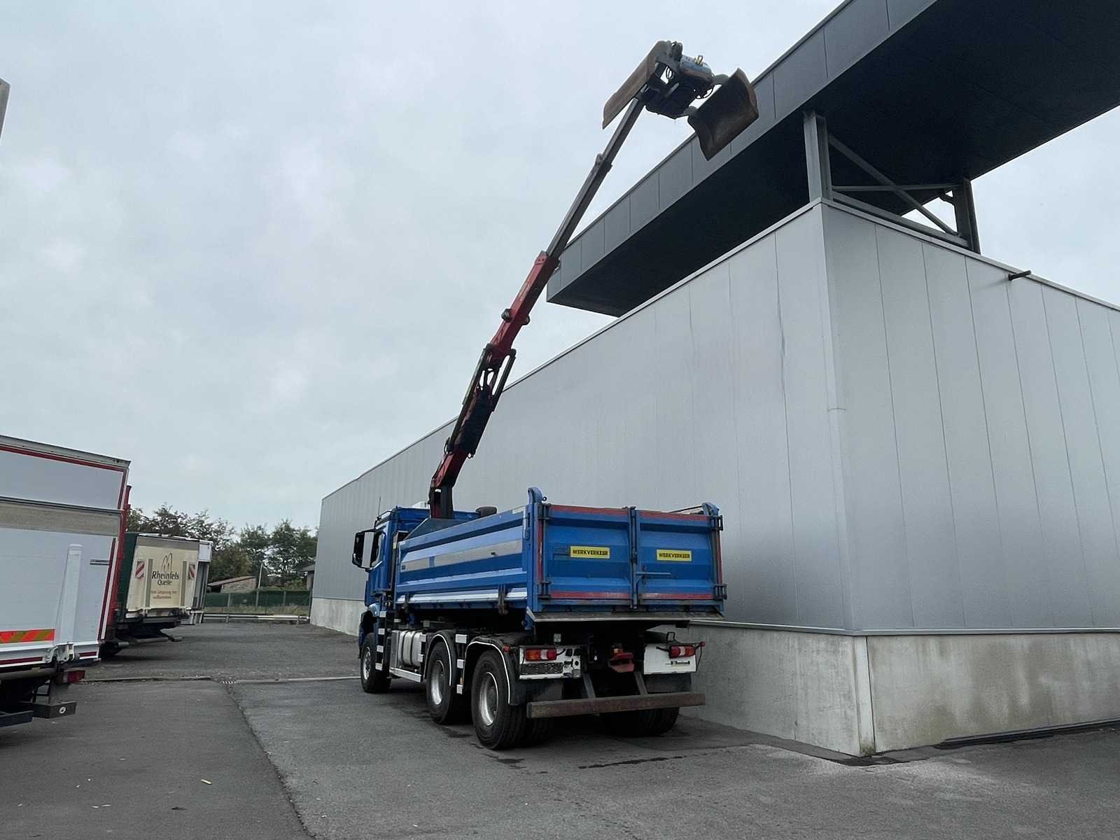 Voorzien van: Palfinger kraanarm met grijper, kipfunctie, meesturende achteras Nee Merk: Mercedes-Benz Type: Arocs Bouwjaar: 2016 Chassisnummer VIN: WDB96421810026702 Cilinderinhoud: 12809cc Kilometerstand bij opname: 496586km Datum eerste toelating (NL): 23/05/2016 Aantal assen: 3 Laadvermogen: 30000kg Laadkraan: true Eigen gewicht: 18820kg Startinformatie: Start en rijdt Nationaliteit documenten: Nederlands + attest gevalideerde e705 Kentekenpapieren compleet?: true Aantal zitplaatsen: 2 Automaat: true Diesel: true