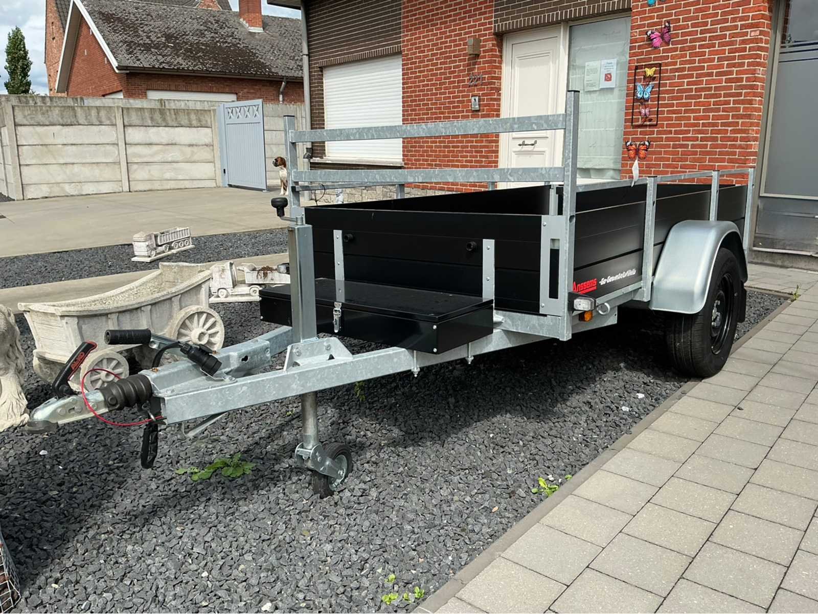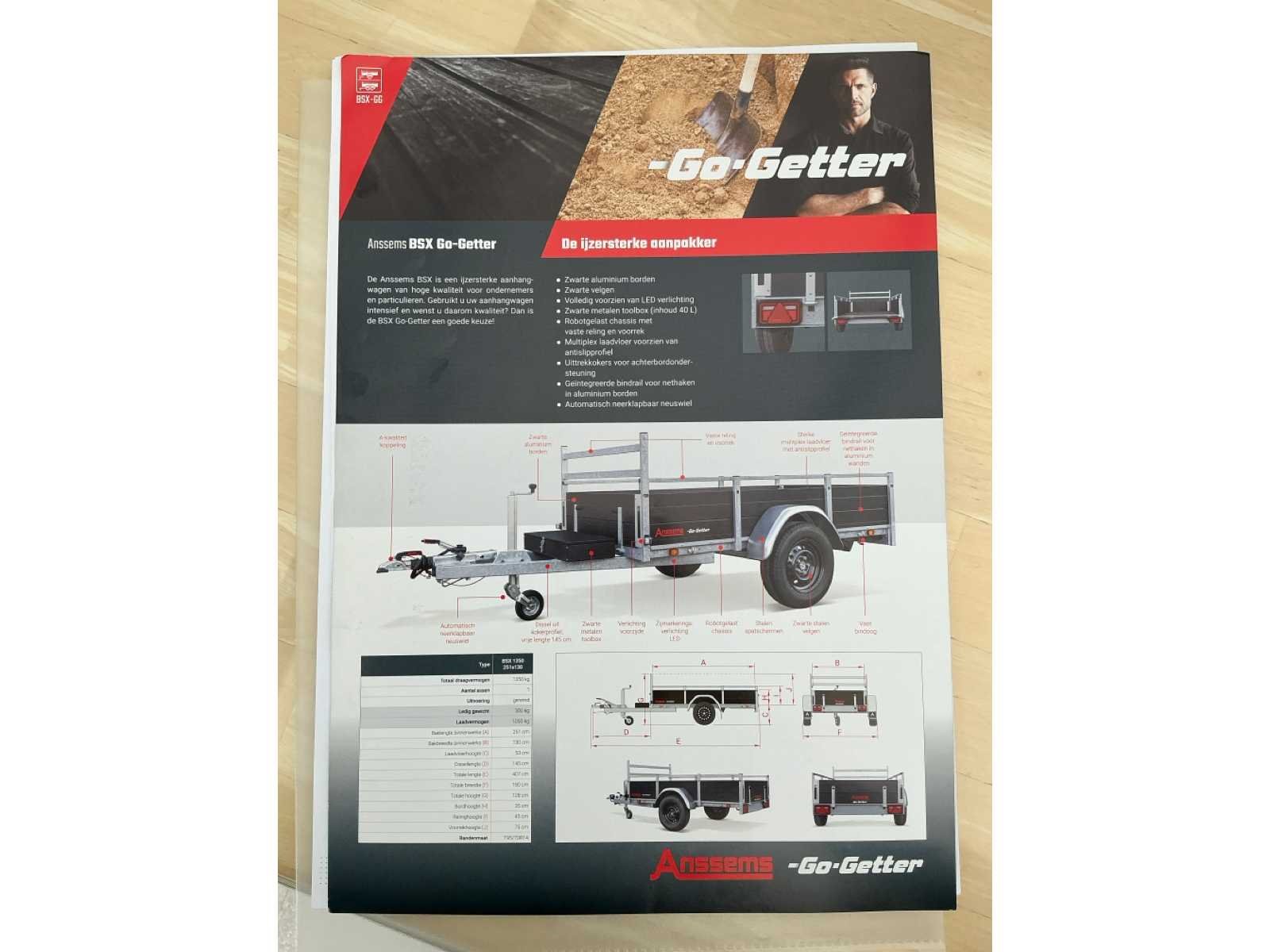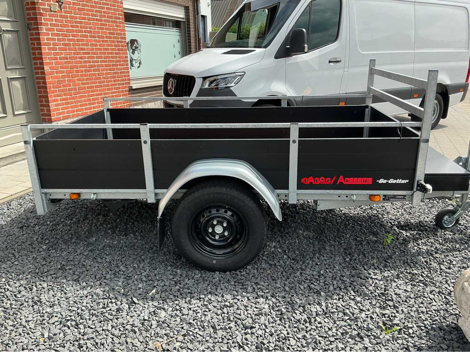 Nieuwe Anssems BSX Go-Getter. Nog nooit ingeschreven. Zwarte Alu borden. Zwarte velgen. Volledig voorzien van LED verlichting. Zwarte metalen toolbox van 40L. Robotgelast chassis met vaste reling en voorrek. Multiplex laadvloer voorzien van antislipprofiel. Uittrekkokers voor achterbordondersteuning. Geïntegreerde bijdrage voor nethaken in Alu borden. Automatisch neerklapbaar neuswiel. Nee Merk: Anssems Type: BSX 1350 Bouwjaar: 2023 Chassisnummer: XLJ0X030290303494 Aantal assen: 1 Laadbak afmeting l: 251cm Laadbak afmeting b: 130cm Ledig gewicht: 300kg Laadvermogen: 1050kg Nationaliteit documenten: België