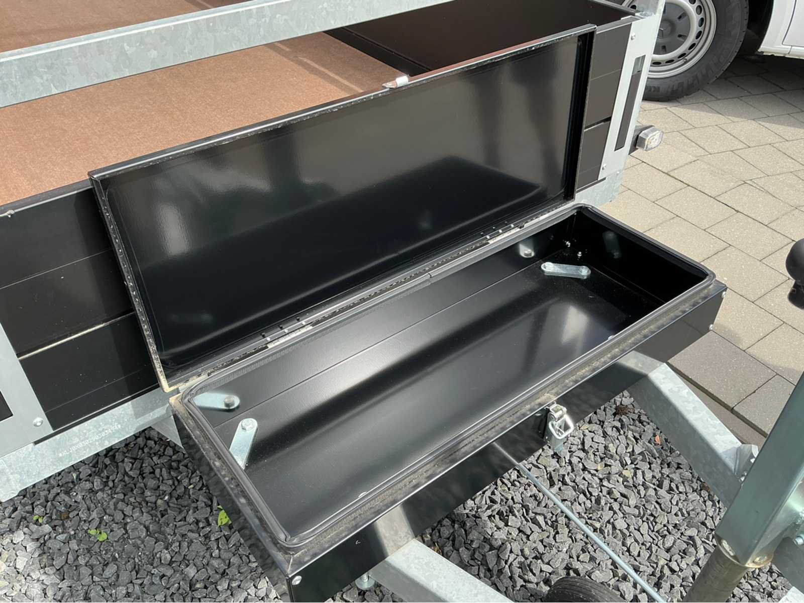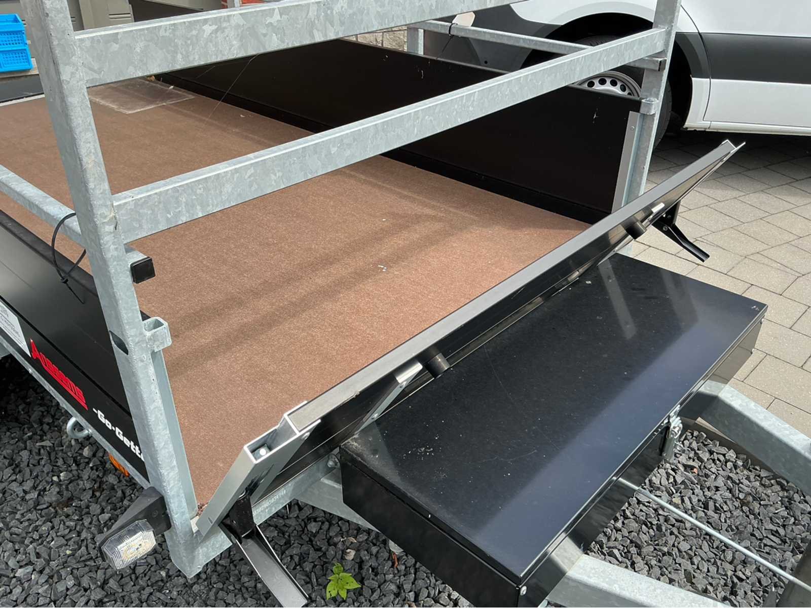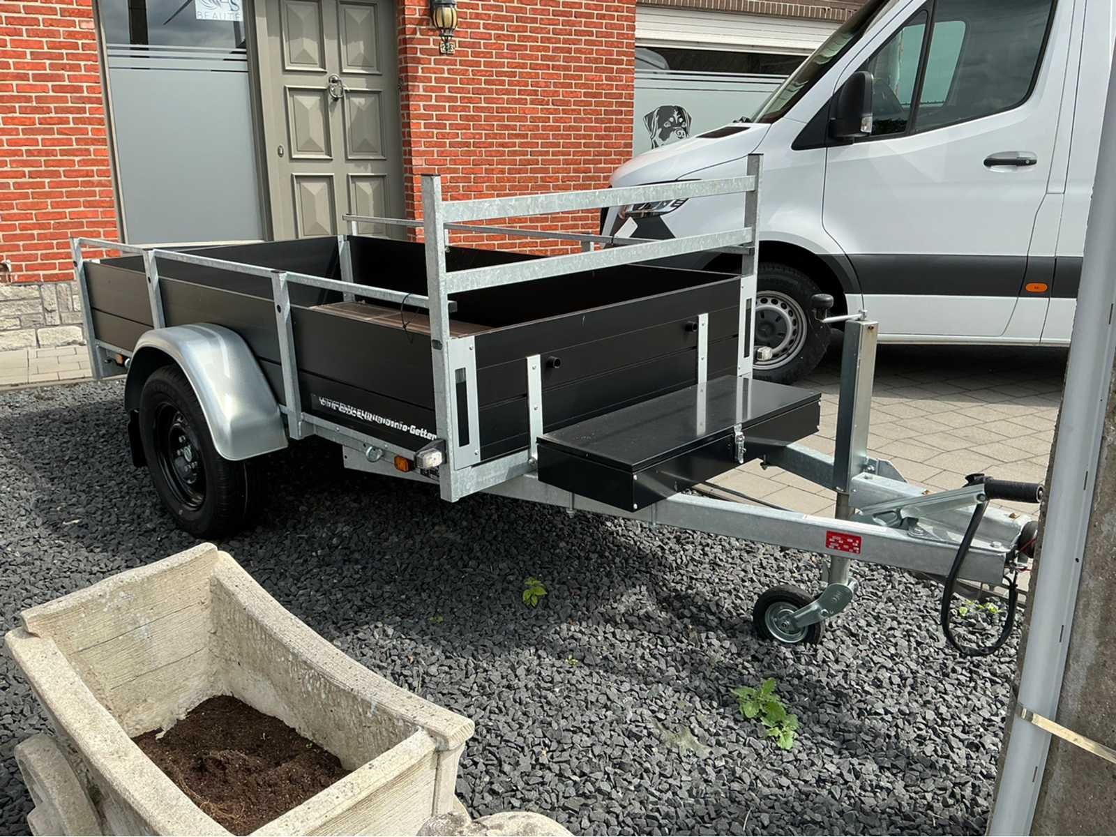 Nieuwe Anssems BSX Go-Getter. Nog nooit ingeschreven. Zwarte Alu borden. Zwarte velgen. Volledig voorzien van LED verlichting. Zwarte metalen toolbox van 40L. Robotgelast chassis met vaste reling en voorrek. Multiplex laadvloer voorzien van antislipprofiel. Uittrekkokers voor achterbordondersteuning. Geïntegreerde bijdrage voor nethaken in Alu borden. Automatisch neerklapbaar neuswiel. Nee Merk: Anssems Type: BSX 1350 Bouwjaar: 2023 Chassisnummer: XLJ0X030290303494 Aantal assen: 1 Laadbak afmeting l: 251cm Laadbak afmeting b: 130cm Ledig gewicht: 300kg Laadvermogen: 1050kg Nationaliteit documenten: België