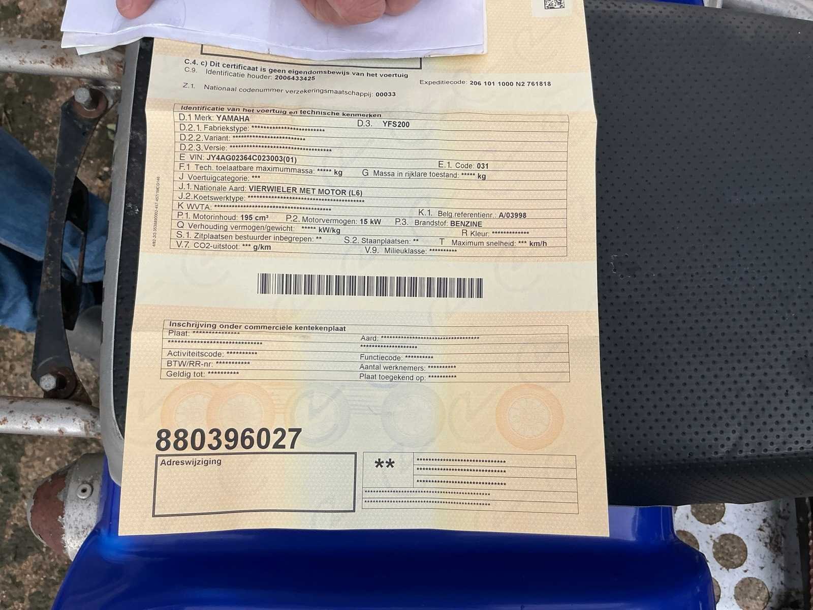 Start niet ! Nee Merk: Yamaha Model: YFS200 Chassisnummer: JY4AG02364C023003 Bouwjaar: 2004 Vermogen (kW): 15kW Cilinderinhoud: 195cc Brandstof: Benzine