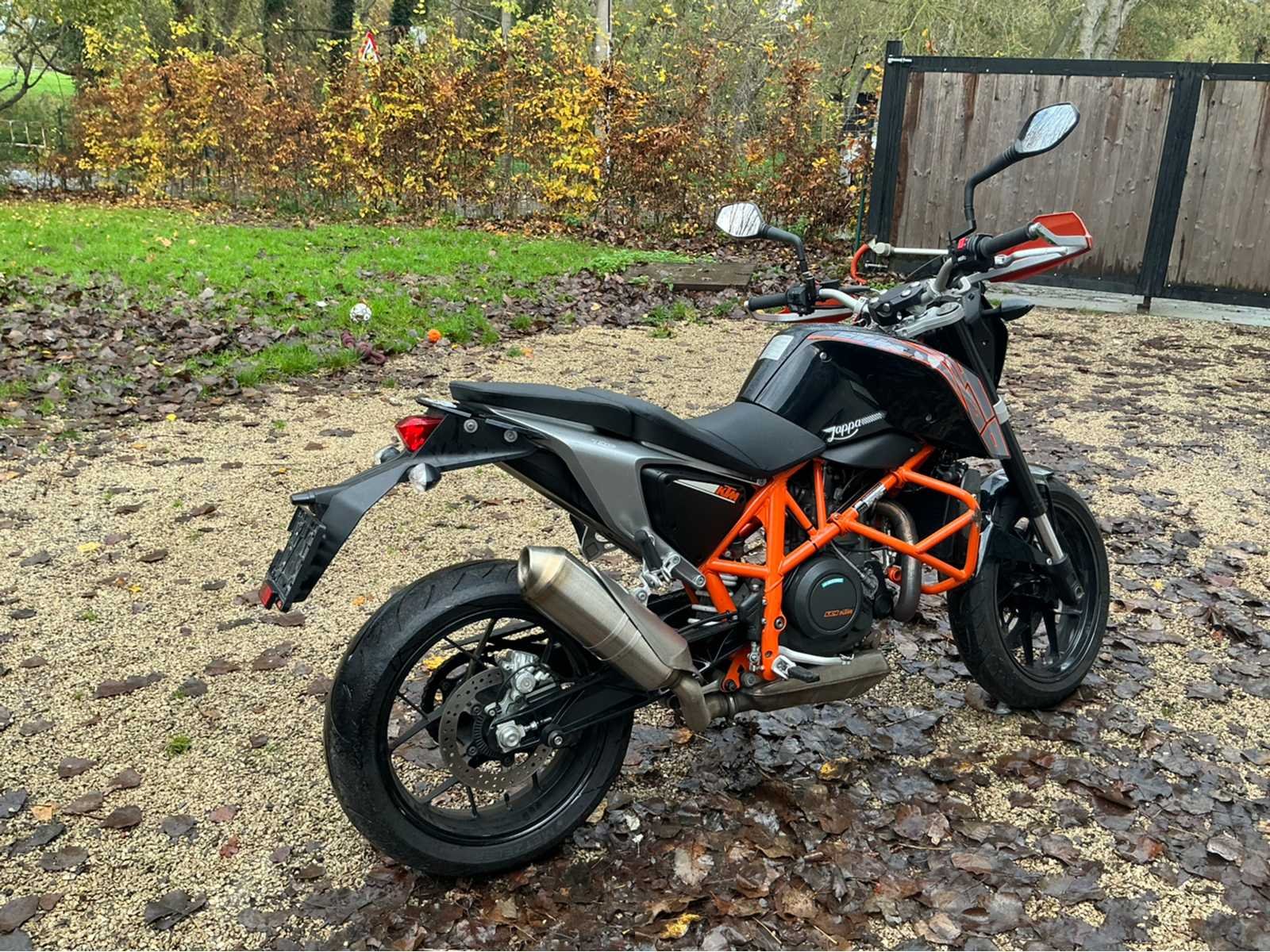 Originele staat<gr>1 cilinder<gr>niewe set banden inbegrepen Metzeler Sportec M9 RR<gr>onderhoud gekregen<gr>gekeurd voor verkoop<gr>uitlaat lichte schade maar werkt perfect<gr>aluminium handvatbeschermers lichte schade<gr>valbeugels lichte schade<gr>topcase met bevestigingsplaat<gr>Leo Vince One EVO slip-on + cat delete (linkpijp) inbegrepen Nee Merk: KTM Type: Duke 690 Kenteken: MBLR955 Brandstof: Benzine Chassisnummer: VBKLDT407EM766285 Cilinderinhoud: 690cc Datum eerste toelating: 20/03/2015 Gewicht: 150kg Vermogen (kW): 52kW Afgelezen kilometerstand: 15619km Nationaliteit documenten: Belgische Startinformatie: Start en rijdt Bouwjaar: 2014