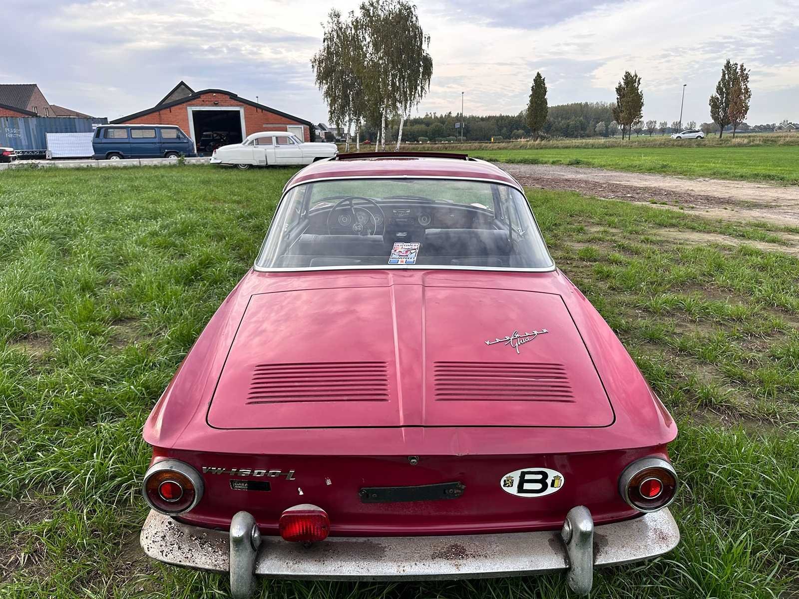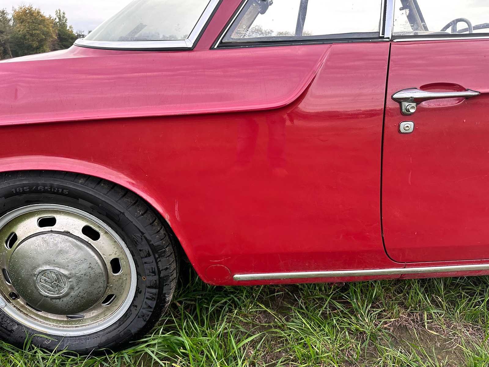 Auto rijdt en remt. Heeft zeldzaam schuifdak. Complete auto. Gezond chassis. Belgische papieren Deels originele lak. Mooi interieur. Remmerij vernieuwd. No Merk: Volkswagen Type: Karmann Ghia T34 Bouwjaar: 1967 Chassisnummer: 347169342 Afgelezen kilometerstand: 91950 Brandstof: Benzine Datum eerste toelating: 13/04/1967 Boorddocumenten aanwezig?: true Kentekenpapieren compleet?: true Carrosserie: Coupé Transmissie: manual Vermogen (pk): 50 Aantal deuren: 2 Aantal zitplaatsen: 4 Aantal sleutels: 1 Kleur: Rood Cilinderinhoud: 1600 Aantal cilinders: 4