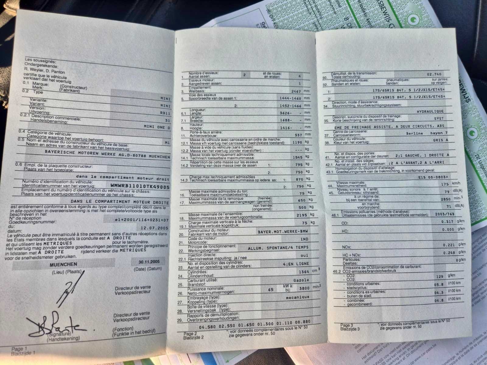Opgelet, deze auto zal niet worden gekeurd voor verkoop (van toepassing op Belgische particuliere kopers). Nee Merk: Mini Model: One D Bouwjaar: 2005 Afgelezen kilometerstand: 182506km Cilinderinhoud: 1364cc Vermogen (kW): 65kW Brandstof: diesel Chassisnummer: WMWRB11010TK49005 Aantal zitplaatsen: 5 Emissieklasse: Euro 4 Nationaliteit documenten: Belgisch Gelijkvormigheidsattest aanwezig: true Keuringsrapport geldig tot: 08/2025 Zichtbare schade: Zie foto’s. Vavato voert geen technische keuring uit.: true Inschrijvingsbewijs - deel 1 : Aanwezig Inschrijvingsbewijs - deel 2: Aanwezig