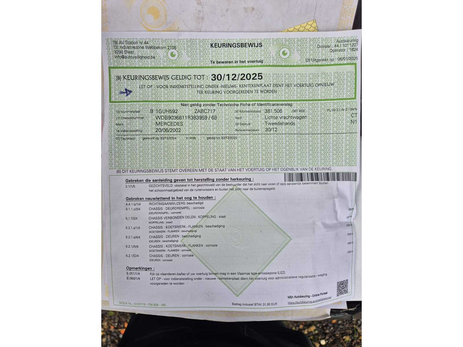 Opgelet, deze auto zal niet worden gekeurd voor verkoop (van toepassing op Belgische particuliere kopers). Nee Merk: Mercedes-Benz Type: Sprinter Bouwjaar: 2002 Chassisnummer: WDB9036611R383959 Afgelezen kilometerstand: 388571km Brandstof: diesel Nationaliteit documenten: Belgisch