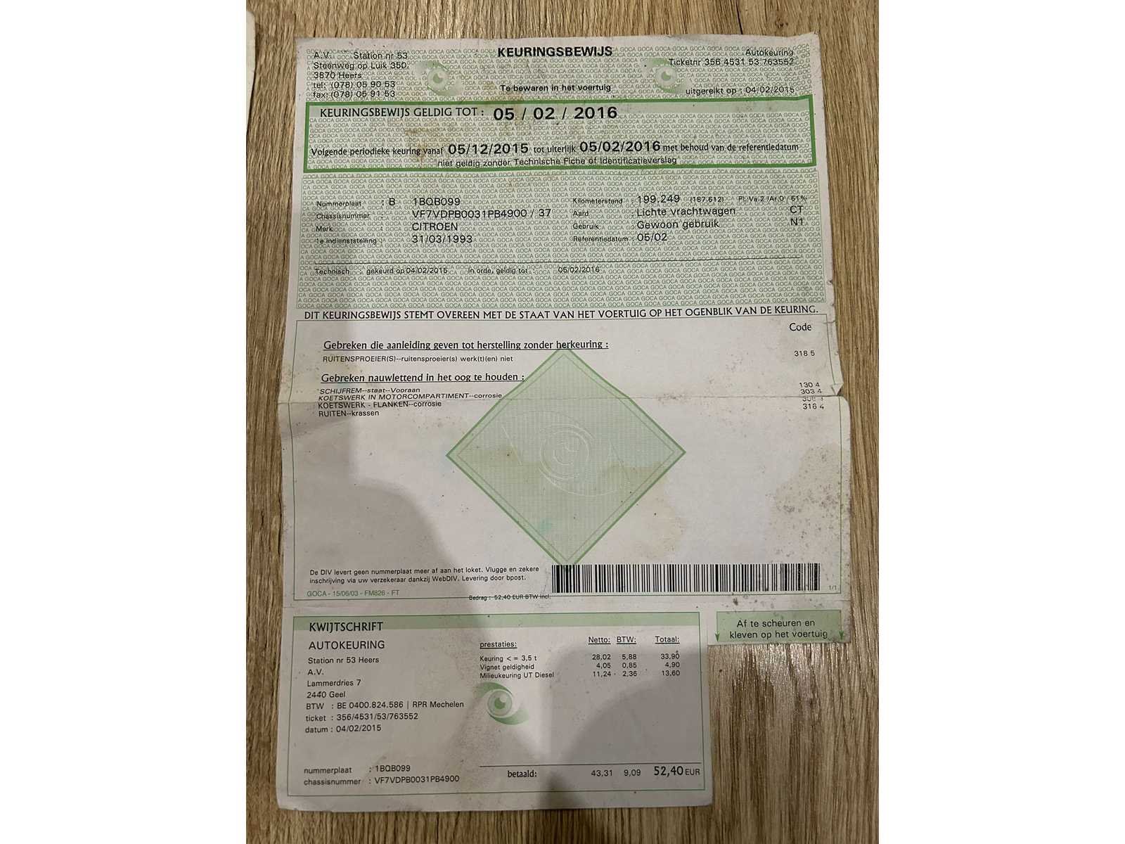 Non Merk: Citroën Type: C15 Bouwjaar: 1993 Afgelezen kilometerstand: 203000 Brandstof: Diesel Kentekenpapieren compleet?: true Inschrijvingsbewijs - deel 1 : Ok Inschrijvingsbewijs - deel 2: Ok Gelijkvormigheidsattest aanwezig: true