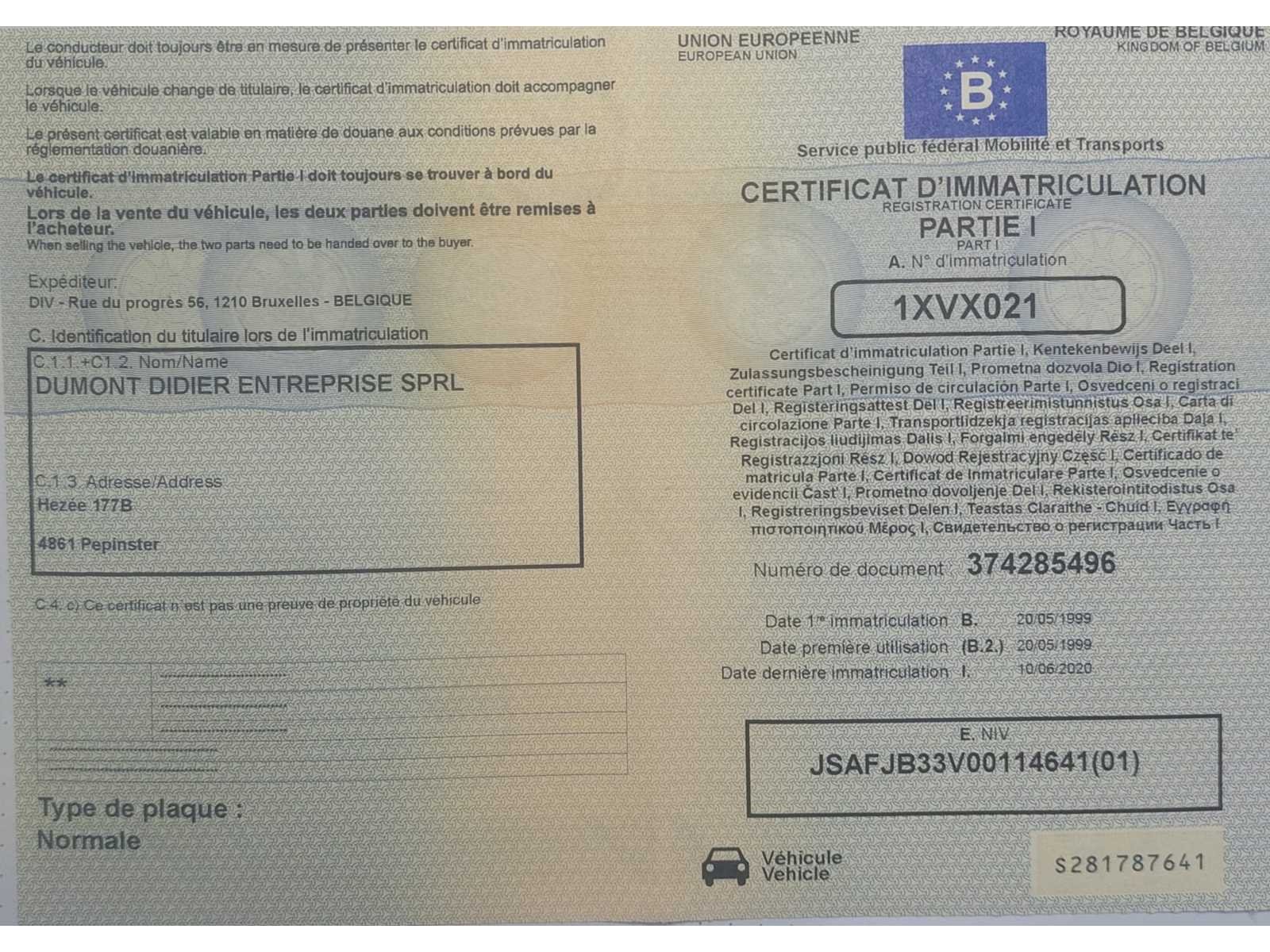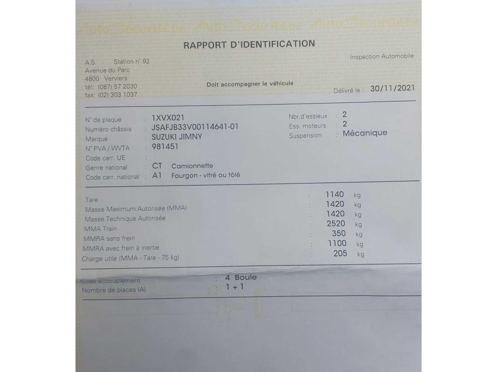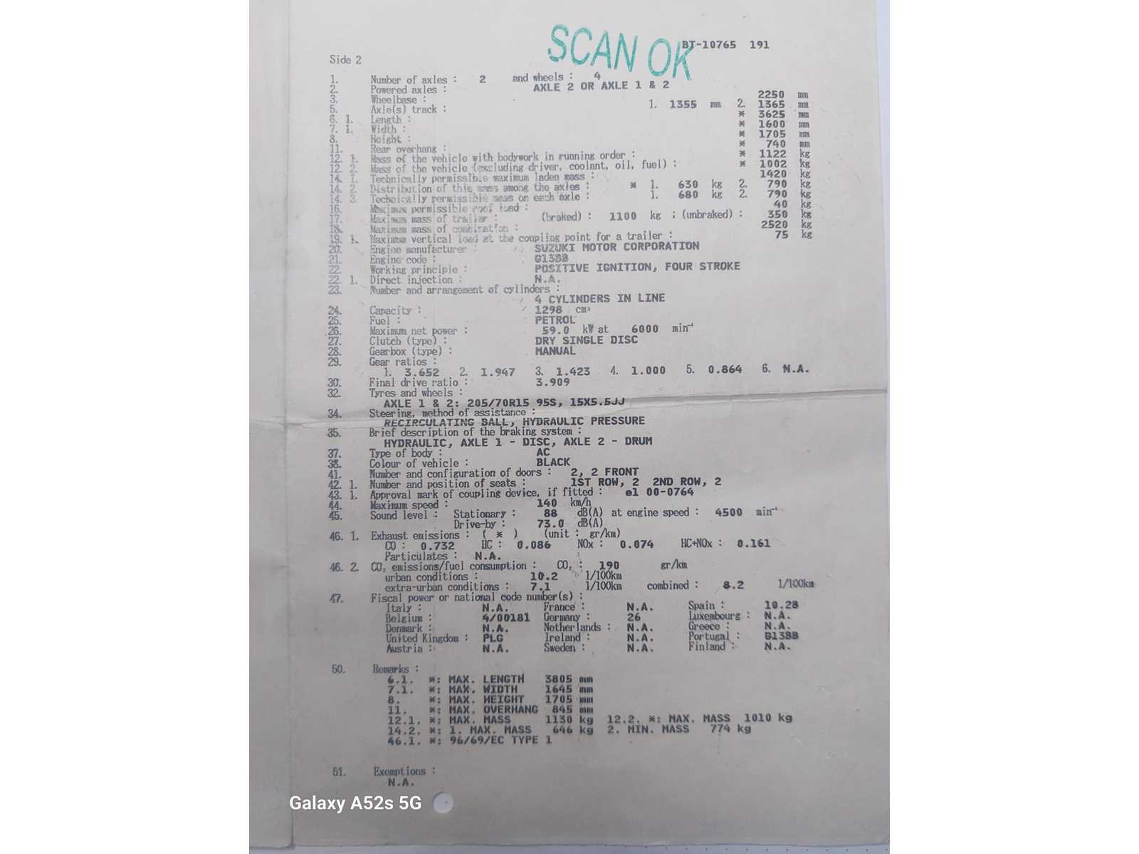 De buizen en het chassis zijn weer in orde gezet Non Merk: Suzuki Model: Jimny Type: Camionnette Bouwjaar: 1999 Afgelezen kilometerstand: 220000km Cilinderinhoud: 1298cc Vermogen (kW): 59kW Brandstof: benzine Kleur: Noir Emissieklasse: Euro 2 Aantal cilinders: 4 Inschrijvingsbewijs - deel 1 : Ok Inschrijvingsbewijs - deel 2: Ok