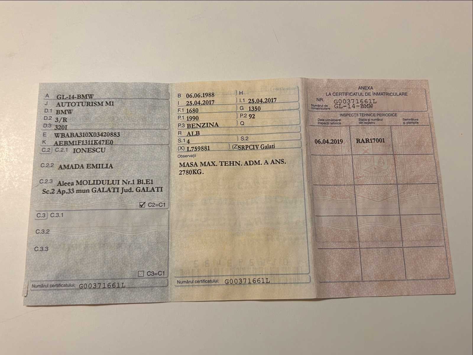 Prachtige BMW 320i Cabriolet (E30) uit 1988, uitgerust met de beroemde 2,0 L zescilinder lijnmotor (M20B20) die 129 pk (95 kW) levert. Dit model combineert het tijdloze ontwerp van de E30-serie met het rijplezier van atmosferische BMW-motoren. Witte Alpinweiß carrosserie, zwarte canvas softtop en een prachtig rood lederen interieur. De auto is in goede algemene staat en werkt perfect. Een iconische cabriolet, ideaal voor liefhebbers van jonge spelers en verzamelaars. Merk / Model: BMW 320i Cabriolet (E30) Datum van eerste registratie: 06/06/1988 Chassisnummer (VIN): WBABA310X03420883 Motor: 6-cilinder lijnmotor – M20B20 Cilinderinhoud: 1.991 cc Vermogen: 95 kW / 129 pk Fiscale macht: 11 pk Versnellingsbak: 5-versnellingsbak Brandstof: Benzine Transmissie: RWD No Chassisnummer: WBABA310X03420883 Merk: BMW Model: 320 i Cabriolet Type: E 30 Afgelezen kilometerstand: 110550km Brandstof: Essence Datum eerste inschrijving: 1988 Datum eerste toelating: 1988 Nationaliteit documenten: Roumanie Carrosserie: Cabriolet Aandrijving: Links Transmissie: Manuelle Vermogen (pk): 129 Vermogen (kW): 95 Aantal deuren: 2 Aantal zitplaatsen: 4 Aantal sleutels: 1 Kleur: Blanc Cilinderinhoud: 1991 Aantal cilinders: 6