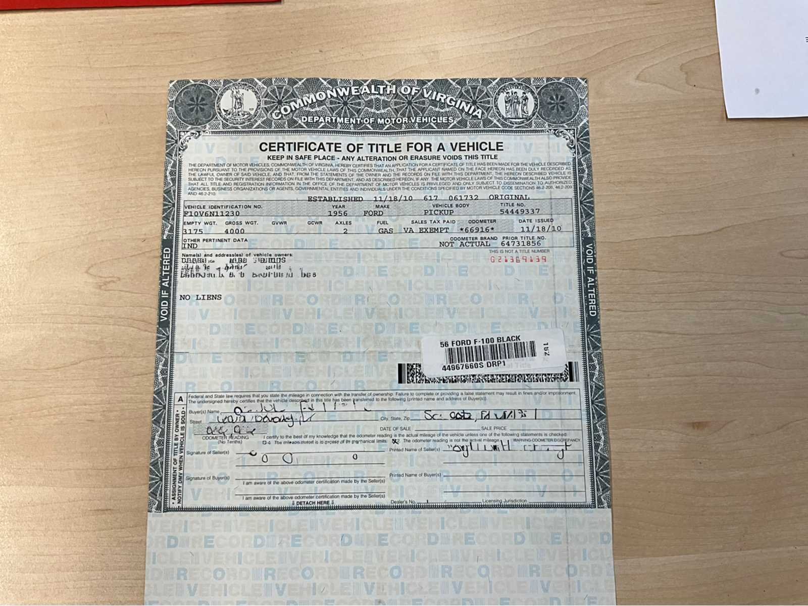 Het voertuig werkt niet Voertuig te restaureren Documenten VS Non Chassisnummer: F10V6N11230 Merk: Ford Model: F-100 V8 Nationaliteit documenten: USA Aantal zitplaatsen: 2 Stuurwiel: Gauche USA titel: Yes Kleur: Noir Aantal cilinders: 8 Bouwjaar: 1956
