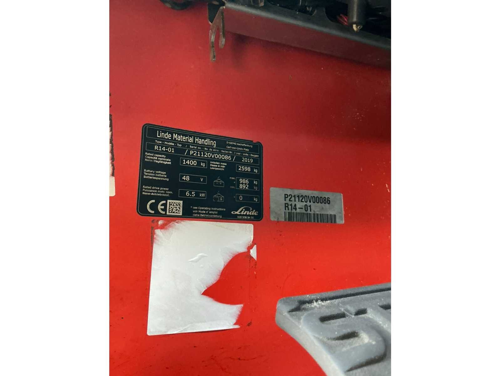 Geijkt Weegsysteem ,led werklichten ,blue spot , camera , Linde bestuurder controle . Nee Merk: Linde Type: R14-01 Bouwjaar: 2019 Serienummer: P21120V00086 Brandstof: Elektrisch Mast: Triple Soort band: Volrubber banden Aantal wielen: 3 Afgelezen urenstand: 1990 Side-shift: true Triple mast: true Eigen gewicht: 3500kg Hefvermogen: 1400kg Lepellengte: 1000mm Min. hefhoogte: 0mm Max. hefhoogte: 6960mm Hefhoogte: 6960mm Vol rubber banden: true Totale afmeting L: 1800mm Totale afmeting Breedte: 1270mm Totale afmeting Hoogte: 2920mm