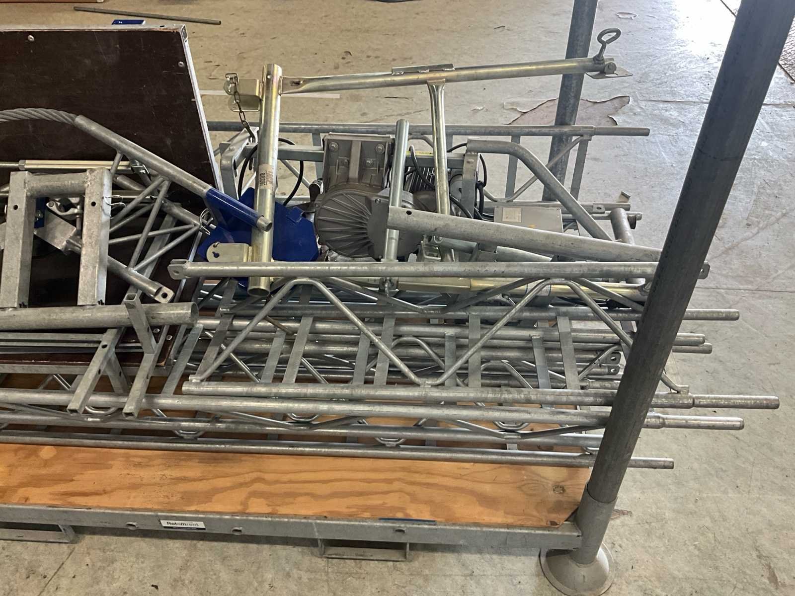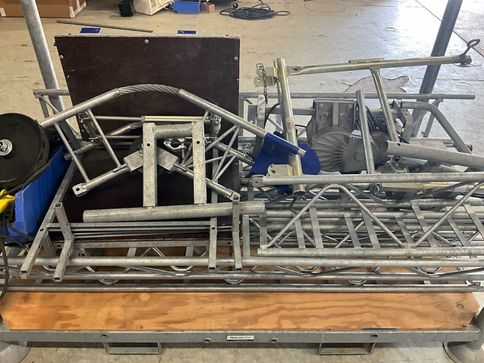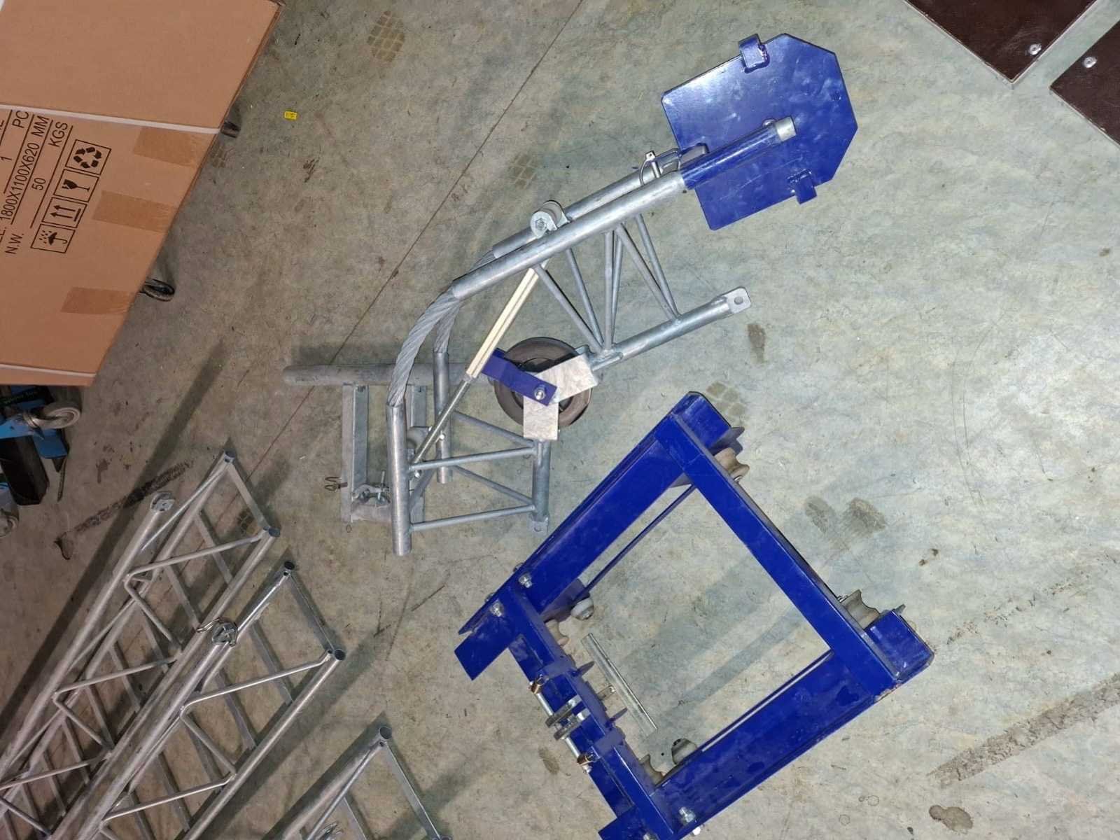 Apache 5 pannenlift voor dakwerken in werkende staat. Manuel aanwezig. Kan tot 45 graden knikken. Voorzien van extra steunen. Exclusief stapelrek! No Merk: Pannenlift voor dakwerken Model: Apache 5 Hoogte: 16000cm