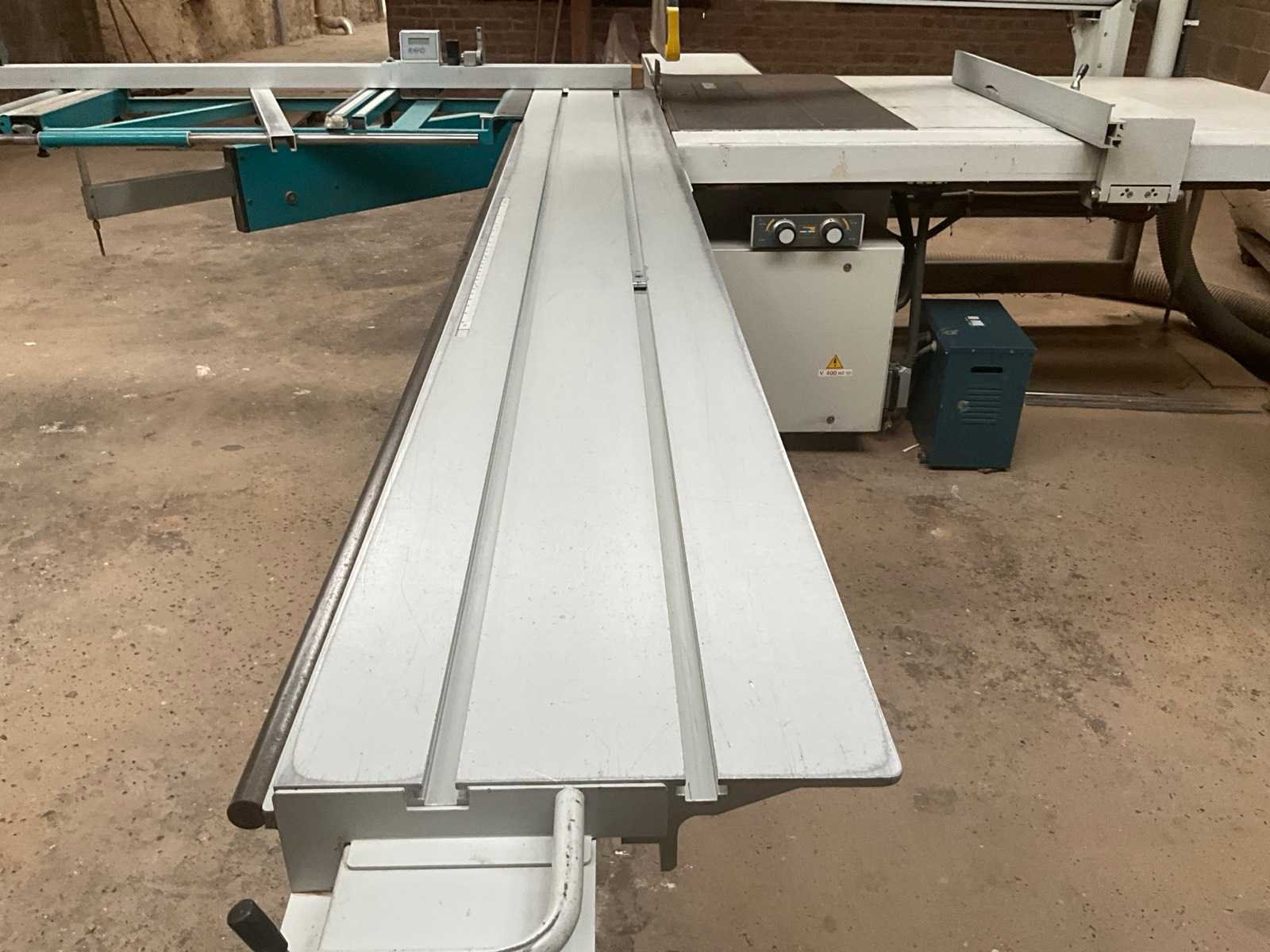 Machine: Paneelzaagmachine Merk: Griggio S.p.A. (Italië) Model: Tornado Type: Professionele formaatzaag / paneelzaag Functie: Voor het nauwkeurig zagen van grote platen en panelen (hout, MDF, multiplex, etc.) Besturing: Digitale bediening met display, instelbare zaaghoogte, zaaghoek en snelheid Motorvermogen: ca. 7,5 kW (afhankelijk van uitvoering, zie typeplaat) Voeding: 3-fase, 230/400 V, 50 Hz Uitrusting: Schuiftafel voor groot plaatmateriaal Digitale uitlezing en instellingen Noodstopknop Diverse bedieningsknoppen voor hoogte, hoek en aanslagen Afzuiging: Stofafzuiginstallatie aanwezig (met filterzak en opvangzak) – aangesloten op de zaagmachine om houtstof op te vangen Stofafzuiger: Industrieel model met motor, plastic opvangzak en filterdoek bovenaan Toepassing: Ideaal voor schrijnwerk, meubelmakerij en interieurbouw Geschikt voor precisie-zaagwerk in massief hout en plaatmateriaal Nee