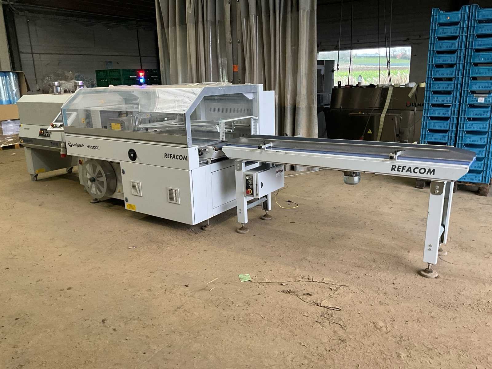Simpack HSE500E hoeklasser met bijhorende krimptunnel Simpack T425 + transportband 200mm No Merk: Smipack Type: HS500E Bouwjaar: 2024 Serienummer: 91539 Transportband afm. l: 2000mm Transportband afm. b: 400mm Transportband afm. h: 200mm Aansluiting: 380V Eigen gewicht: 800kg Totale afmeting L: 6300mm Totale afmeting Breedte: 1550mm Totale afmeting Hoogte: 1500mm