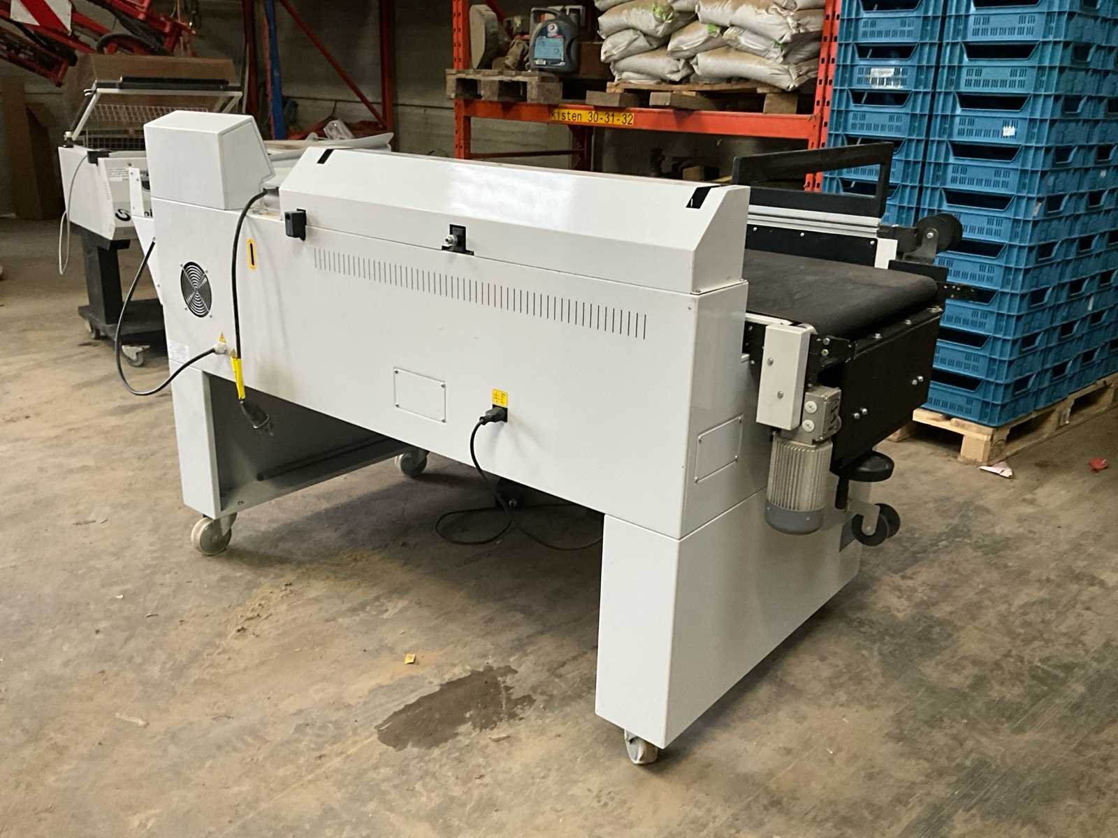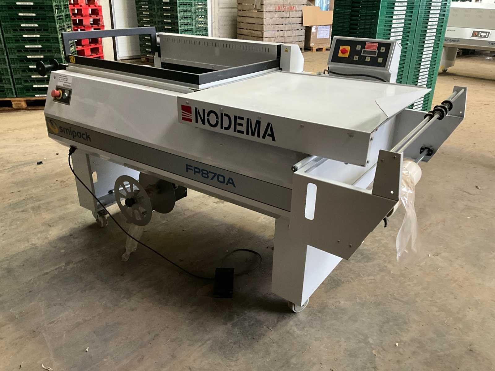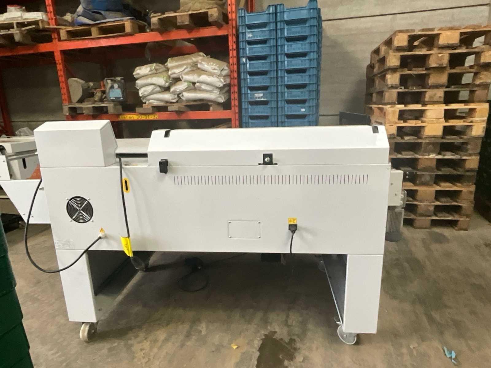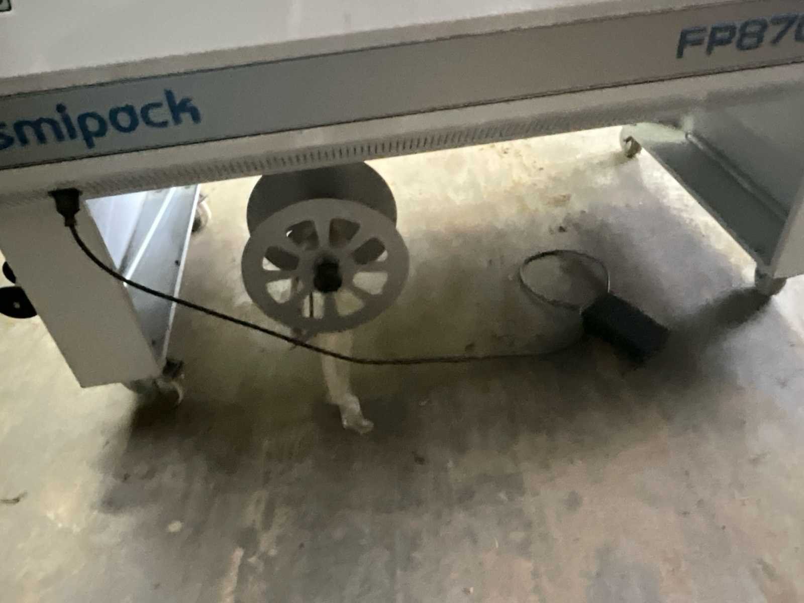 Halfautomatisch No Merk: Smipack Type: FP870A Bouwjaar: 2015 Serienummer: 51530 Werkbreedte: 550mm Transportband afm. l: 1000mm Transportband afm. b: 550mm Transportband afm. h: 210mm Aansluiting: 230V Eigen gewicht: 500kg Totale afmeting L: 2300mm Totale afmeting Breedte: 1200mm Totale afmeting Hoogte: 1150mm