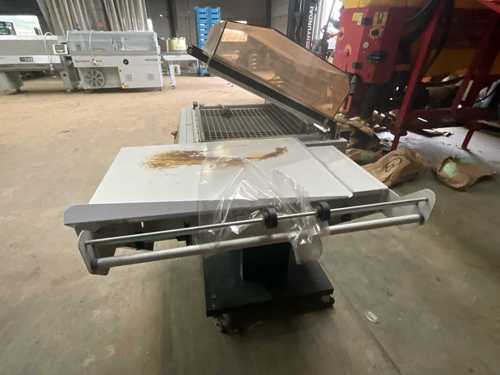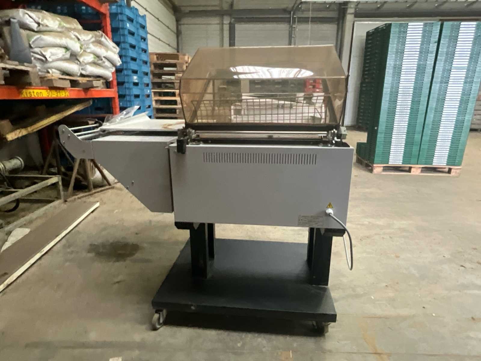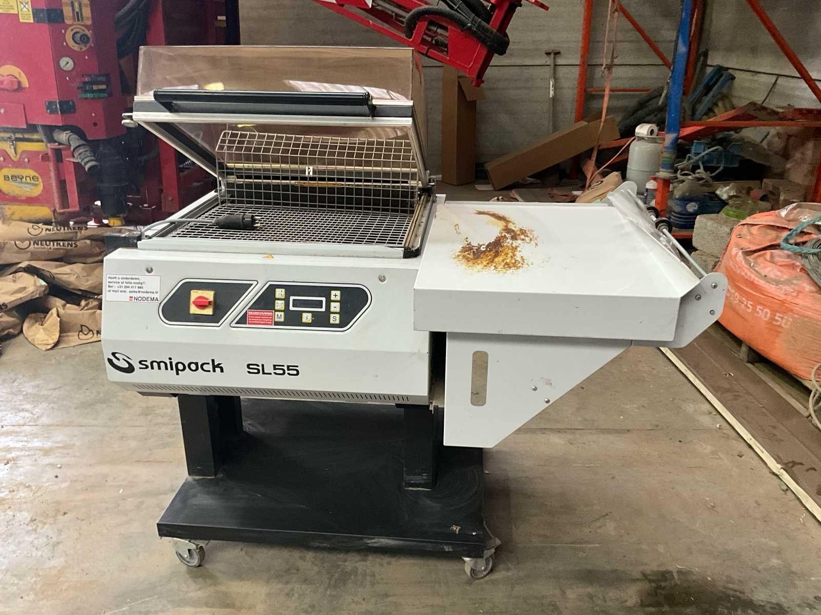 Handmatig No Merk: Smipack Type: SL55 Bouwjaar: 2022 Serienummer: 88522 Werkbreedte: 550mm Transportband afm. l: 630mm Transportband afm. b: 450mm Transportband afm. h: 210mm Aansluiting: 230V Eigen gewicht: 150kg Totale afmeting L: 850mm Totale afmeting Breedte: 1200mm Totale afmeting Hoogte: 1150mm