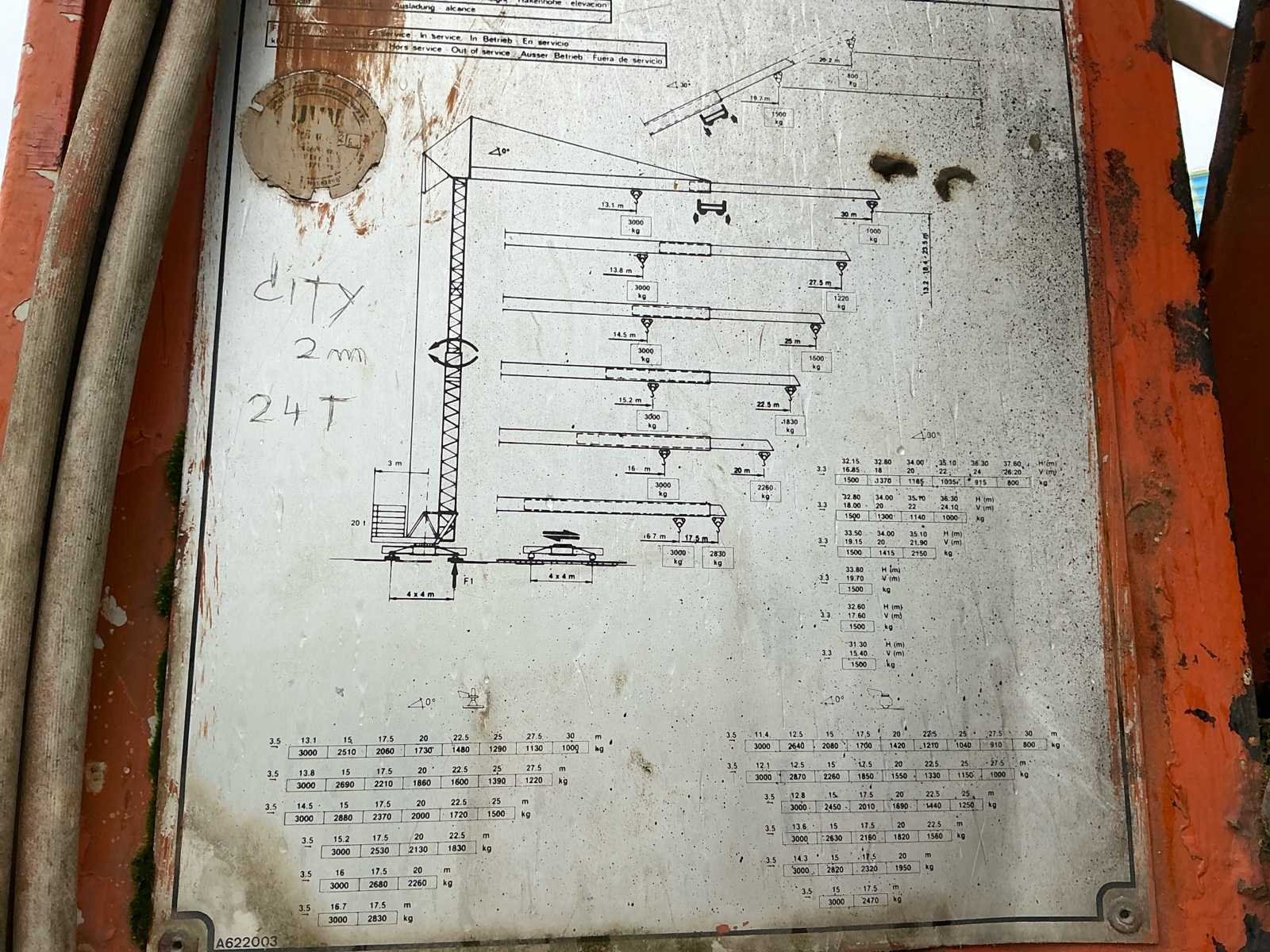 No Merk: Arcomet Type: T33A Bouwjaar: 1990 Max. hijscapaciteit: 3000kg Gieklengte: 30m Max. hijshoogte: 23m Met radiografische afstandsbediening: true
