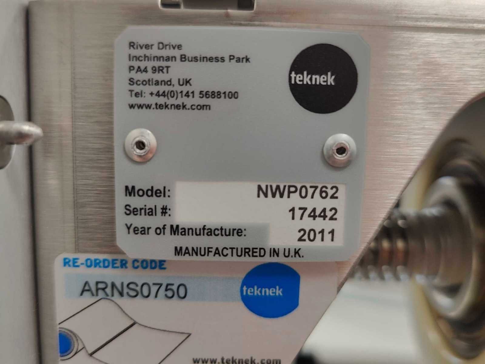 Externe bedrading dient nateken te worden - intern is alles in orde No Merk: Teknek Type: NWP0762 Bouwjaar: 2011 Serienummer: 17442