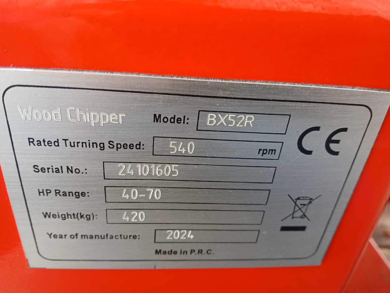 Dubbele invoerrol. Eigen hydraulisch systeem met olietank en pomp. Draaibare uitvoer. Regelbare snelheid invoerrol, rollen kunnen ook terugdraaien. Geleverd met cardan met breekbout. Nee Type: BX52R Bouwjaar: 2024 Serienummer: 24101605 Max. Ø: 120mm Eigen gewicht: 420kg