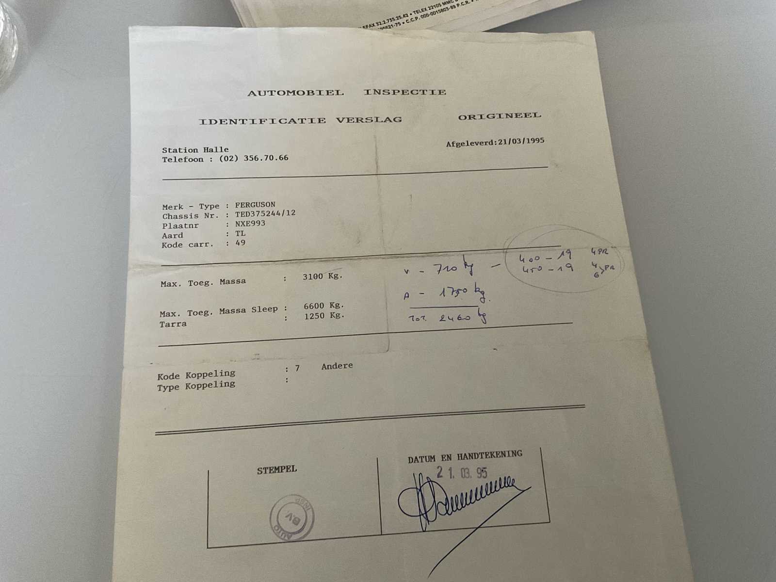 Traktor start en rijdt No Merk: Massey Ferguson Type: TE20 Bouwjaar: 1954 Eigen gewicht: 1250kg Chassisnummer: TED375244 Datum eerste toelating: 17/03/1954