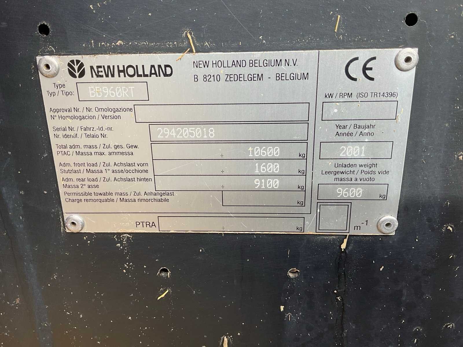 Met snij-inrichting. Balenmaat 120 / 90. Werkende staat. Nee Merk: New Holland Type: BB960RT Bouwjaar: 2001 Afgelezen aantal balen: 55191 Werkbreedte pick-up: 2200mm Afgelezen urenstand: 1365