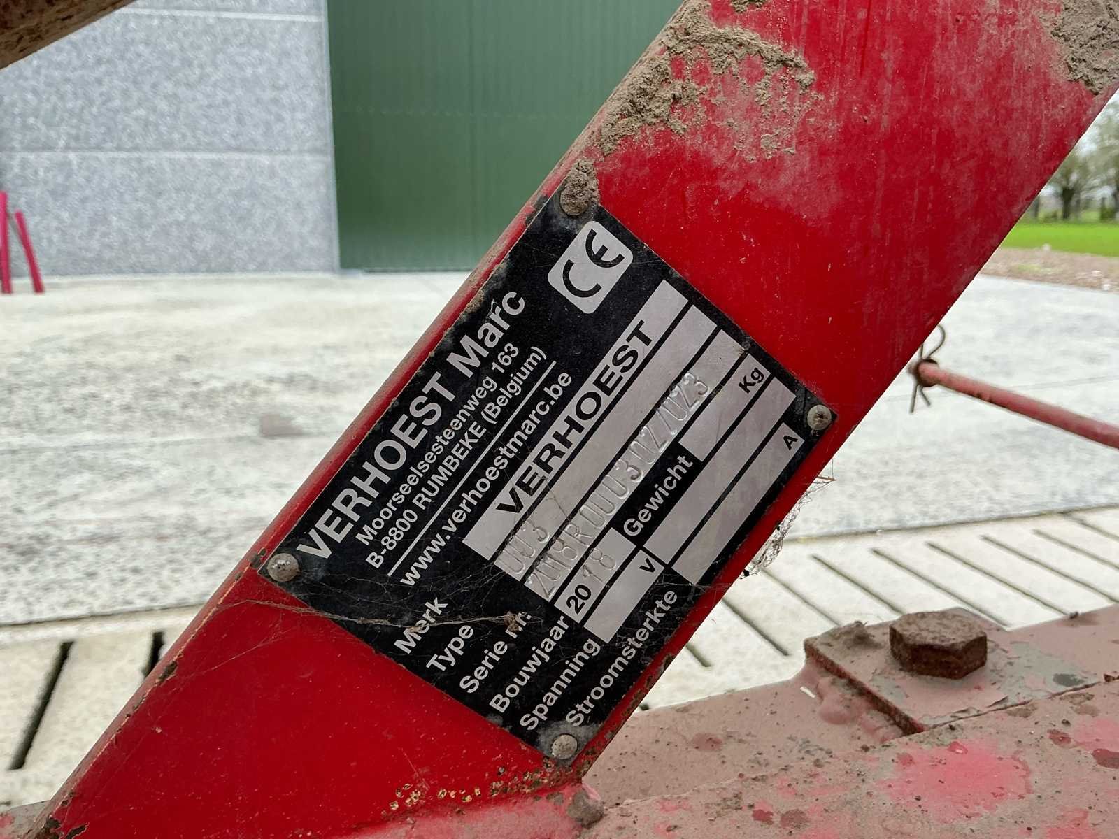 Manuele afname - side shift 60cm - uitschuifbaar wiel - voorzien van grotere wielen (zie detailfoto wielmaat ) - voorzien van 3 schudders - opklapbare pinnen -regelbare mesdiepte - voorzien van hydraulisch aangedreven wiel - klembanden recent vernieuwd - berschermkappen over de side shift - mechanisch en technisch in orde en geen scheuren in metaal. No Merk: Verhoest Bouwjaar: 2018
