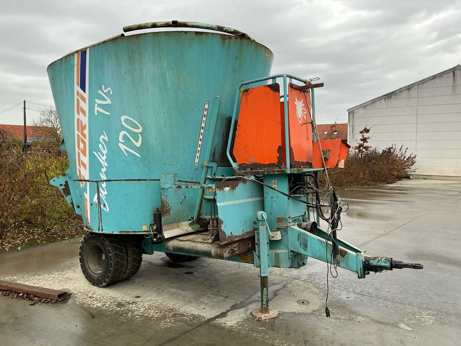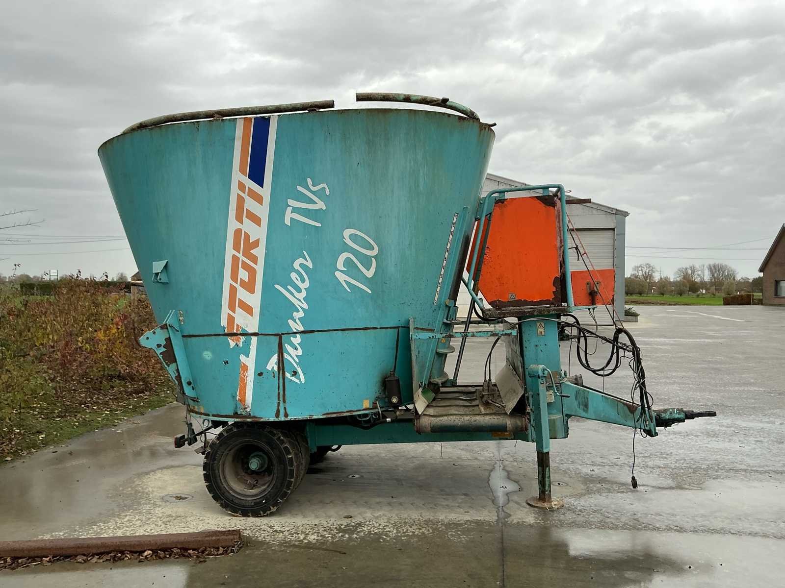 Voorzien van dubbele heftruckbanden - elektrisch en mechanisch in orde - voorzien van werkende weging - verstevigde zijwanden No Merk: STORTI Tankinhoud: 12m³ Aantal mengwalsen: 1