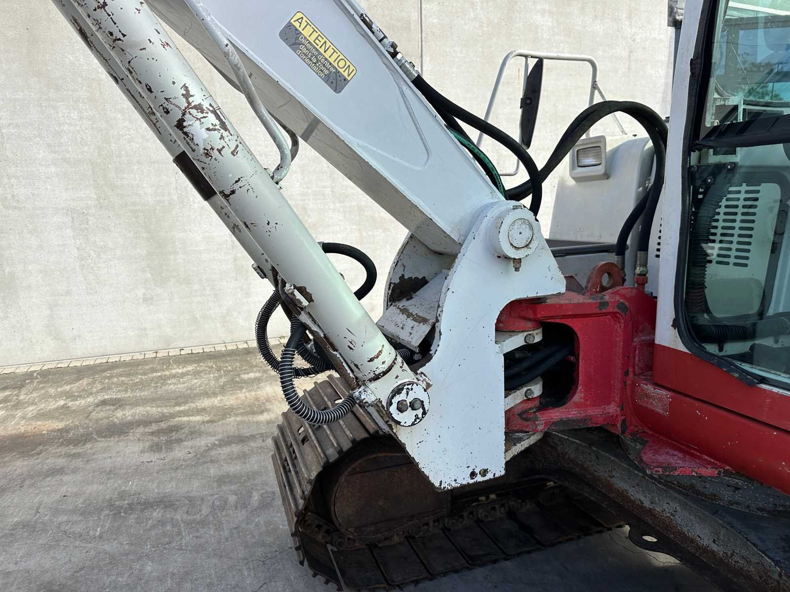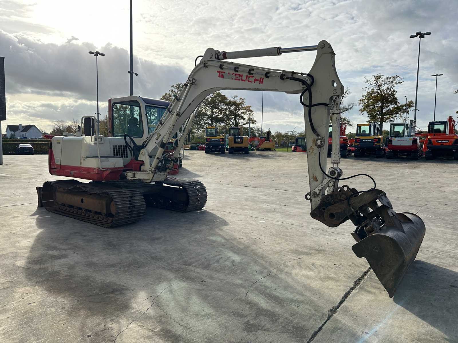 Mechanische snelwissel Kantelbak 1600mm Duwblad Geen documenten Nee Merk: Takeuchi Type: TB175 Bouwjaar: 2002 Serienummer: 12246 Merk motor: Nissan Aantal cilinders: 4 Brandstof: Diesel Graafbak afm. b: 1600mm Rups breedte: 450mm Afgelezen urenstand: 8080 Eigen gewicht: 7280kg Totale afmeting L: 7100mm Totale afmeting Breedte: 2200mm Totale afmeting Hoogte: 2700mm GS Code: 8429521200