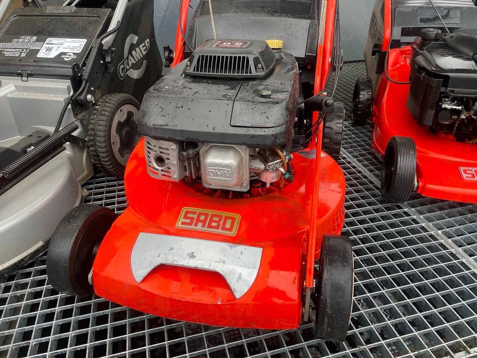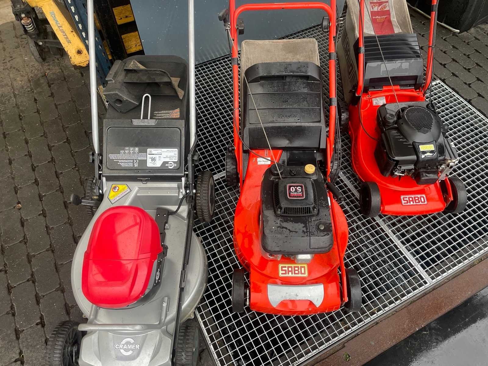 3 x Grasmaaiers (Sabo - Cramer accu aangedreven) Sabo 52 Cm - Aluminium Chassis - zelftrekker - benzine motor - start goed - werkt perfect nog. Sabo 43 Cm - Aluminium Chassis - zelftrekker - benzine motor - werking onbekend. (op te knappen) Cramer 53 (82LM53S) Demo model 8 hr gewerkt als nieuw. incl 2 x accu en lader. - Zelftrekker - 53 Cm Aluminium Chassis - Mulchplug inbegrepen - 4 Kw 5.6 pk elektromotor - Rijsnelheid 6.4 Km/hr traploos instelbaar Incl 1 x Accu 82V290 4 Ah - 1 Accu 82V220G 3 Ah - 1 lader 82C1. Nee Merk: Sabo - Cramer Benzinemotor: true Elektrisch aangedreven: true