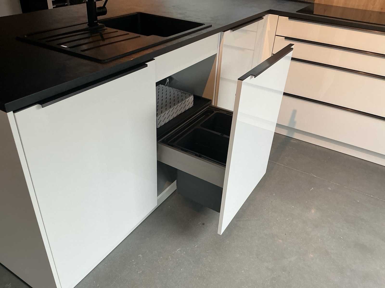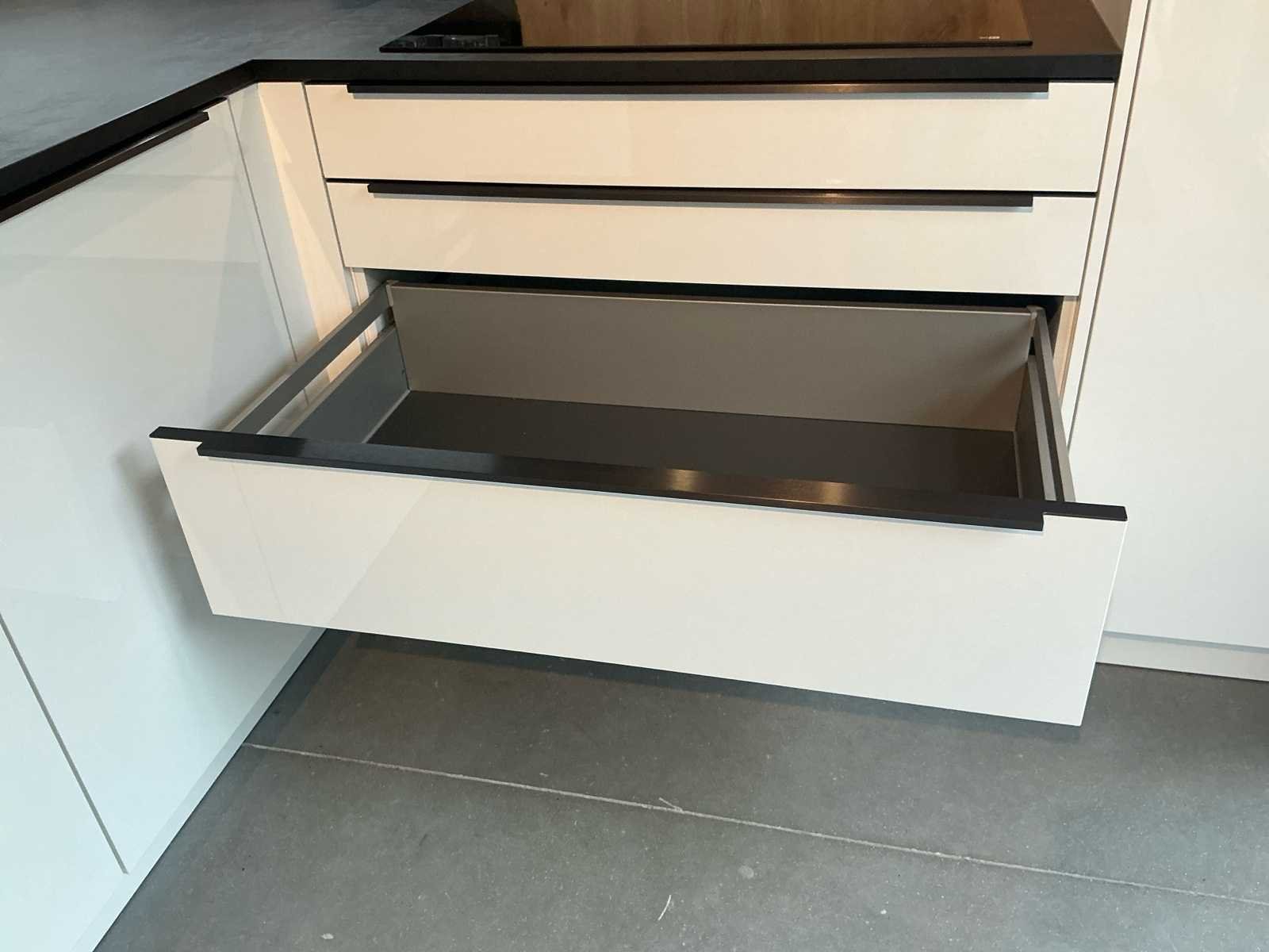 Zelf te demonteren Ophaling 5 Januari 2026 Scandinavische designkeuken – Siemens & Bosch premium Strak kristalwit hoogglans laminaat, geplamuurd beton-look werkblad. Achterwand, bovenkasten & regalen in warm licht eiken. Le Mans-hoekonderkast + alle deuren soft-close. Massief houten bestekindeling. Toestellen (inbouw, ongebruikt): Siemens LC87KHM60 schuine wandafzuigkap Siemens KI18RNFF2 inbouwkoelkast Siemens EX877NYV6E 80cm flex-inductie Siemens HM936GCB1 combi-oven/magnetron Bosch SMV6EB800E volledig geïntegreerde vaatwasser No Merk: Hacker Model: Concept Type keukenopstelling: L-vormig Kraan: Blanco Mida Gootsteen: Blanco Legra 6 Werkblad hoogte: 930cm Aanrechtblad: Laminaat Magnetron: Siemens Fornuis: Inductie siemens Koelkast: Siemens Oven: Siemens Vaatwasser: Bosch Hoofdkleur: Glans wit / Wit eik Style: Scandinavisch Kleur: Wit/Licht eik Materiaal: Laminaat