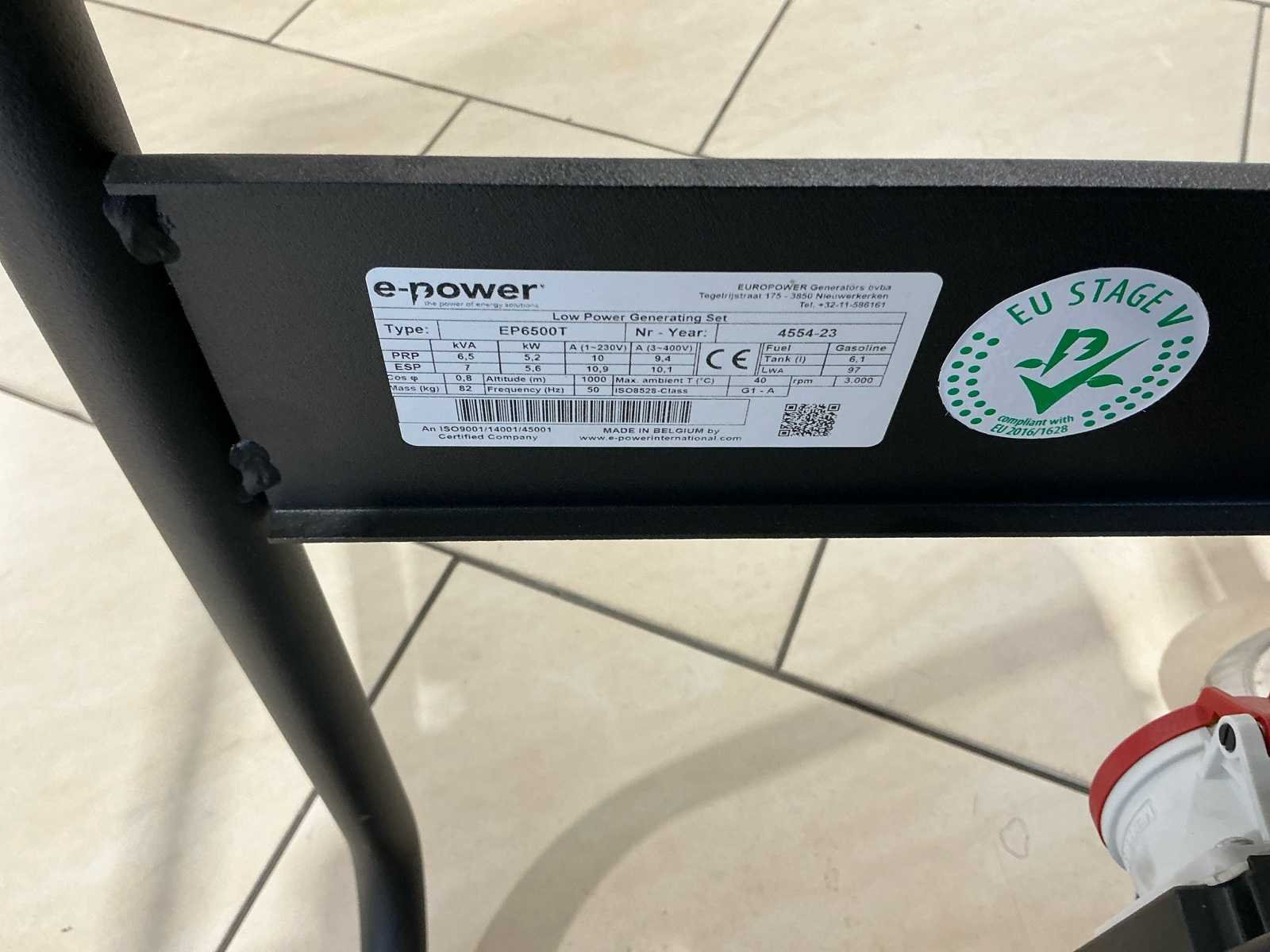 Zeer degelijke en krachtige E-Power EP6500T benzinegenerator, gebouwd in 2023 in België. Uitgerust met een Sincro ET 2 MCR alternator (Italië), levert deze generator betrouwbare stroom in 3-fase (400V) én 230V-uitgangen. De machine combineert hoge prestaties, compact design en lage emissies volgens de EU Stage V-norm. Ideaal voor bouwplaatsen, werkplaatsen, landbouw, evenementen of noodstroomvoorziening. Nee Merk: E-Power Type: EP6500T Bouwjaar: 2023 Serienummer: 4554 Capaciteit.: 7kVA Benzine: true Type motor: Honda GX 390 UT2-VXB9 Aantal cilinders: 1 Motorvermogen (kW): 8kW Luchtgekoeld: true Machinegewicht: 82kg