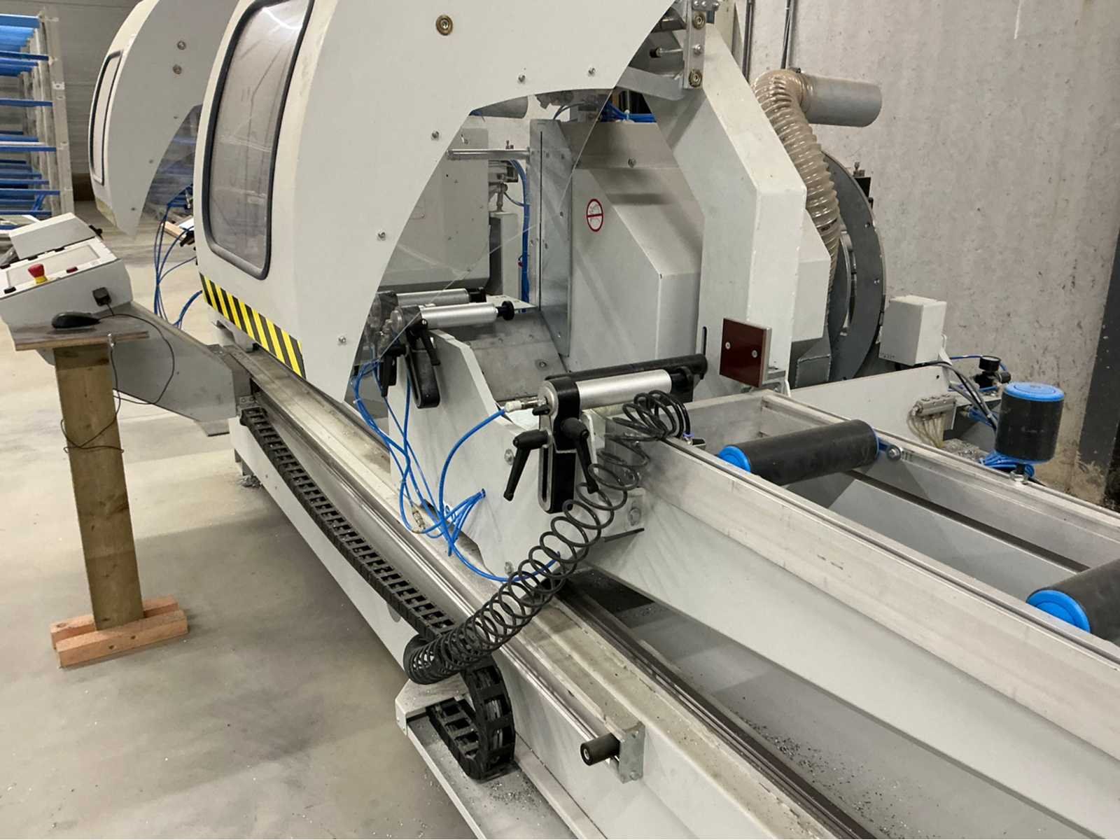 De machine bevindt zich in gebruikte maar goede staat: De Pertici 600 TSE is een dubbele verstekzaagmachine (Double Mitre Saw) voor het zagen van aluminium- en PVC-profielen. Belangrijkste kenmerken: Twee zaagkoppen met een zaagblad van 600 mm diameter. Beide koppen kunnen onder verstek zagen (meestal van 45° tot 90°). De rechterkop is automatisch verplaatsbaar (servo- of pneumatisch gestuurd). Geschikt voor precisiewerk in raam- en deurproductie of gevelbouw. Aansturing via een CNC- of digitaal controlesysteem (afhankelijk van de uitvoering). ⚡ Aansluitings- en gebruiksvereisten: Elektrisch: 400 V / 3-fase / 50 Hz. Perslucht: minimaal 6,5 bar (droog en olievrij). Vermogen: 8 kW → aanbevolen zekering ± 16–20 A. Geluidslevel: ± 63 dB(A) op werkafstand. Nee Merk: Pertici Type: 600 TSE twee kops afkortzaag Bouwjaar: 2022 Serienummer: 00000037 Motorvermogen (kW): 8kW Aansluiting: 400V Machinegewicht: 2050kg