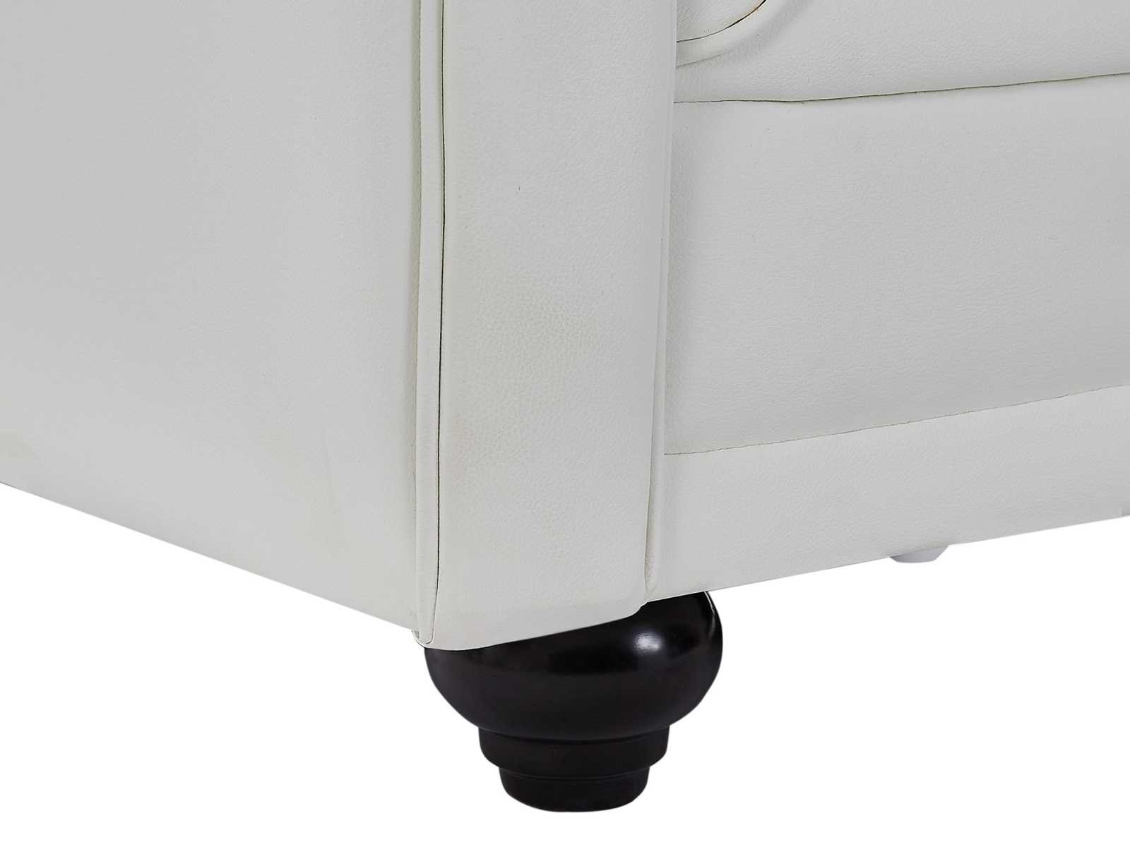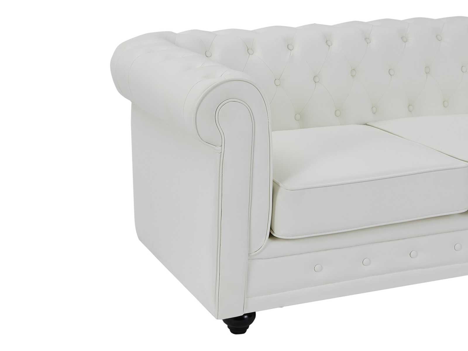 Kenmerken Kleur (tint): Wit Materiaal: Imitatie Materiaal (Basis): Hout Structuur: Hout, multiplex Afwerking: Tufted Modeltype: Chesterfield Aantal zetels: 2 zetels Zitbekleding: Polyurethaanschuim Zitdichtheid: 25 kg/m³ Stoelvering: Nosag-veren, kruisende elastische banden, spiraalveren Rugleuning: Polyurethaanschuim Rugleuningsdichtheid: 22 kg/m³ Rugleuningophanging: Vergrendelende elastische banden Met armleuningen Maximale ondersteunde belasting: 240 kg Geassembleerd geleverd (behalve voeten en/of handgrepen) Grootte Lengte: 168 cm Hoogte: 72 cm Diepte: 88 cm Beenhoogte: 7,8 cm Zithoogte: 42 cm Zitdiepte: 61 cm Non