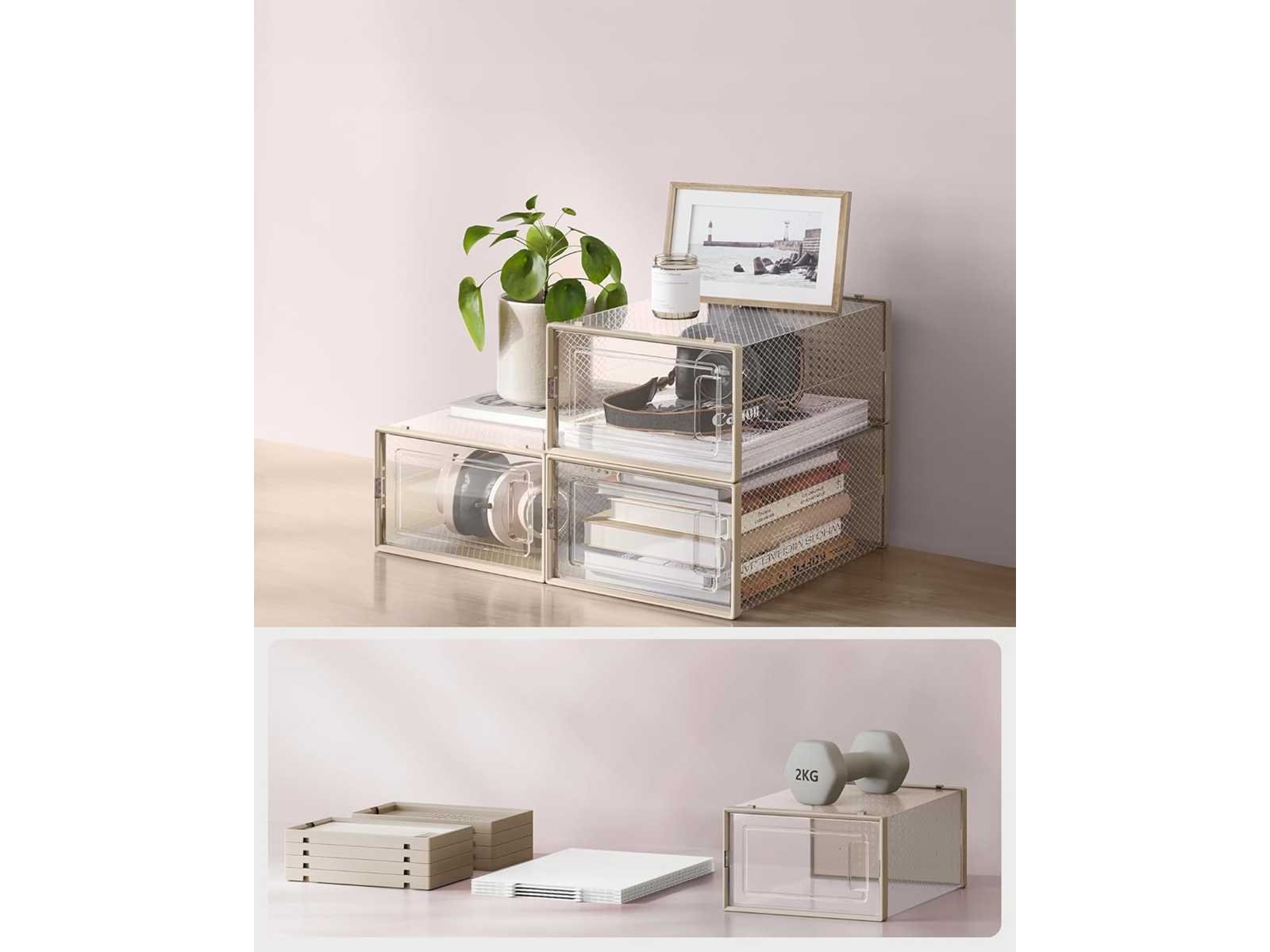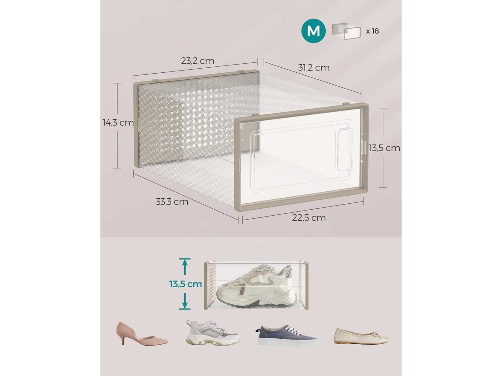 Kenmerken: Kleur: Transparant, havermout Beige Materialen: PP (polypropyleen) plastic doos, PP (polypropyleen) astatische deur, ABS kunststof frame Externe afmetingen: 33,5 x 23,2 x 14,3 cm (D x W x H) Interne afmetingen: 31,2 x 22,5 x 13,5 cm (D x B x H) Gewicht: 5,2 kg Non
