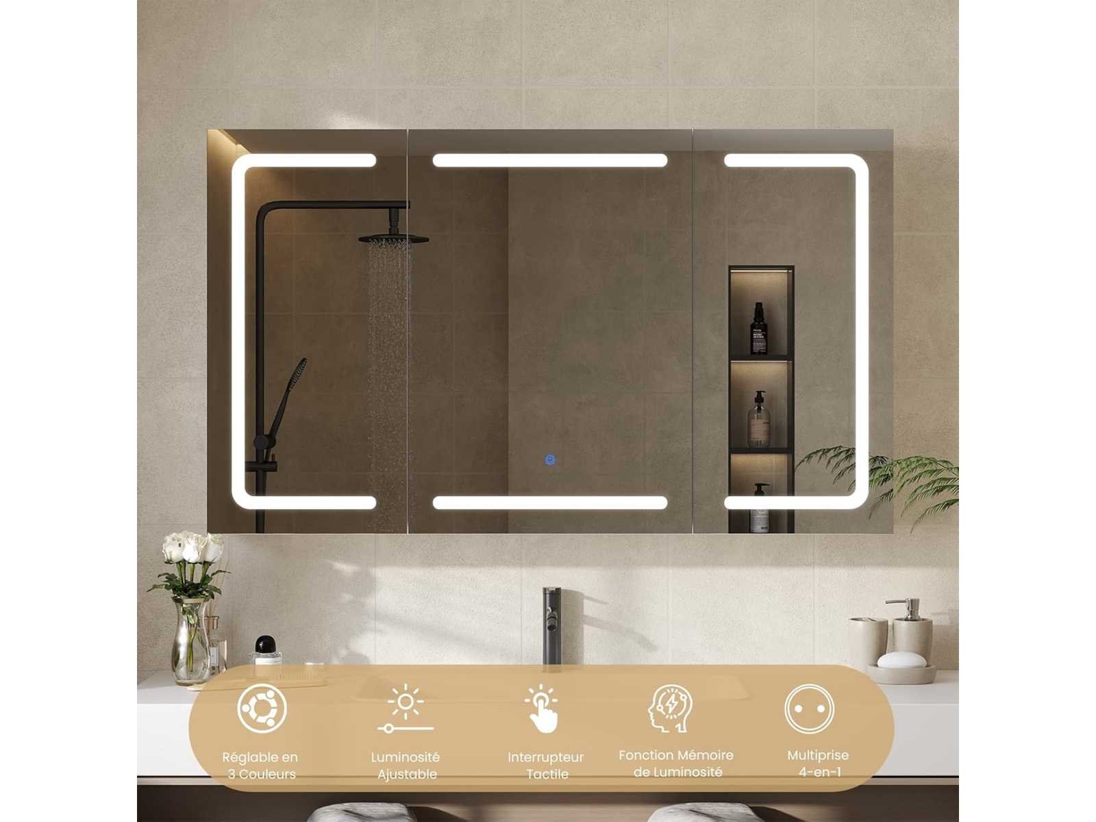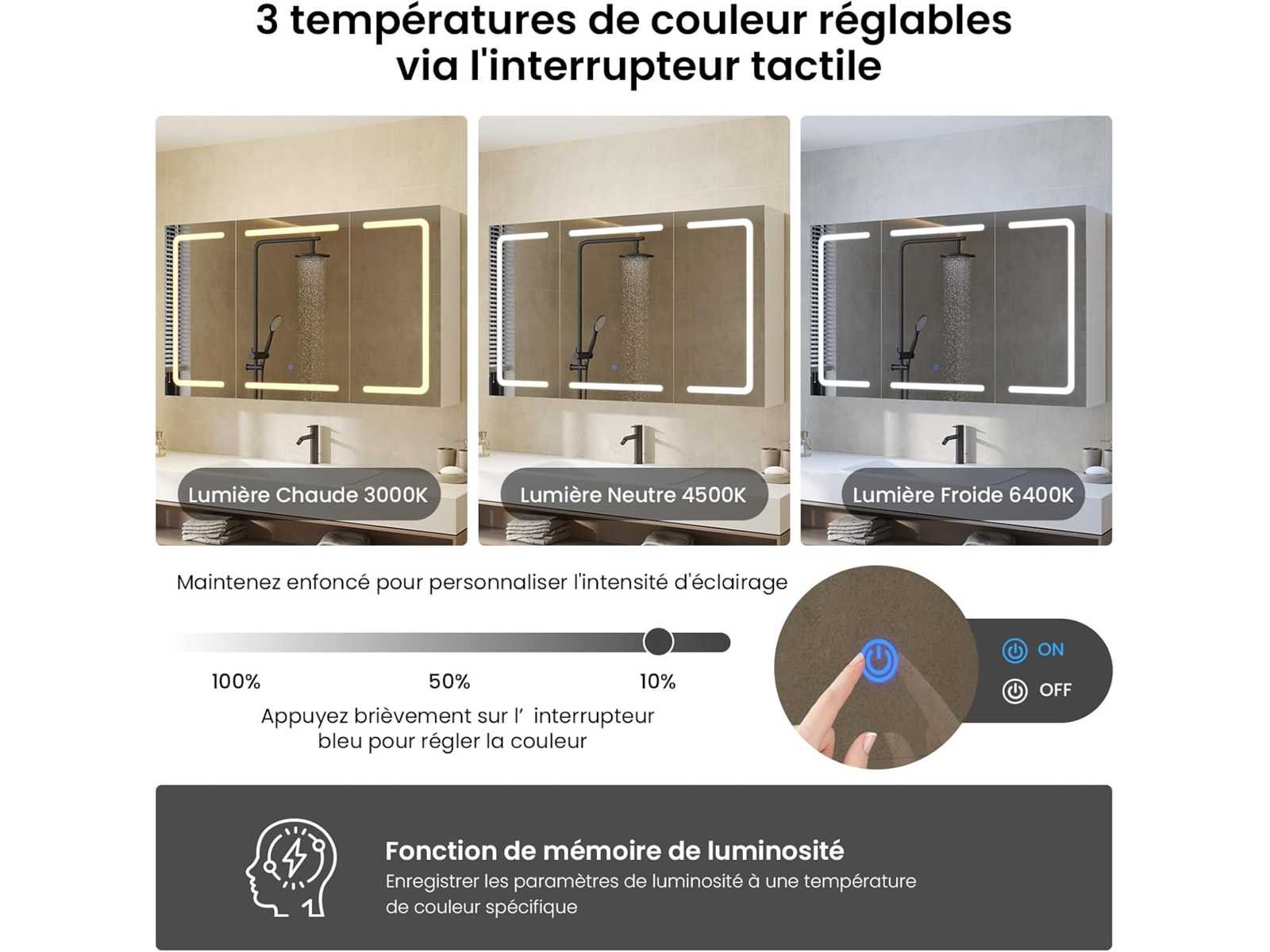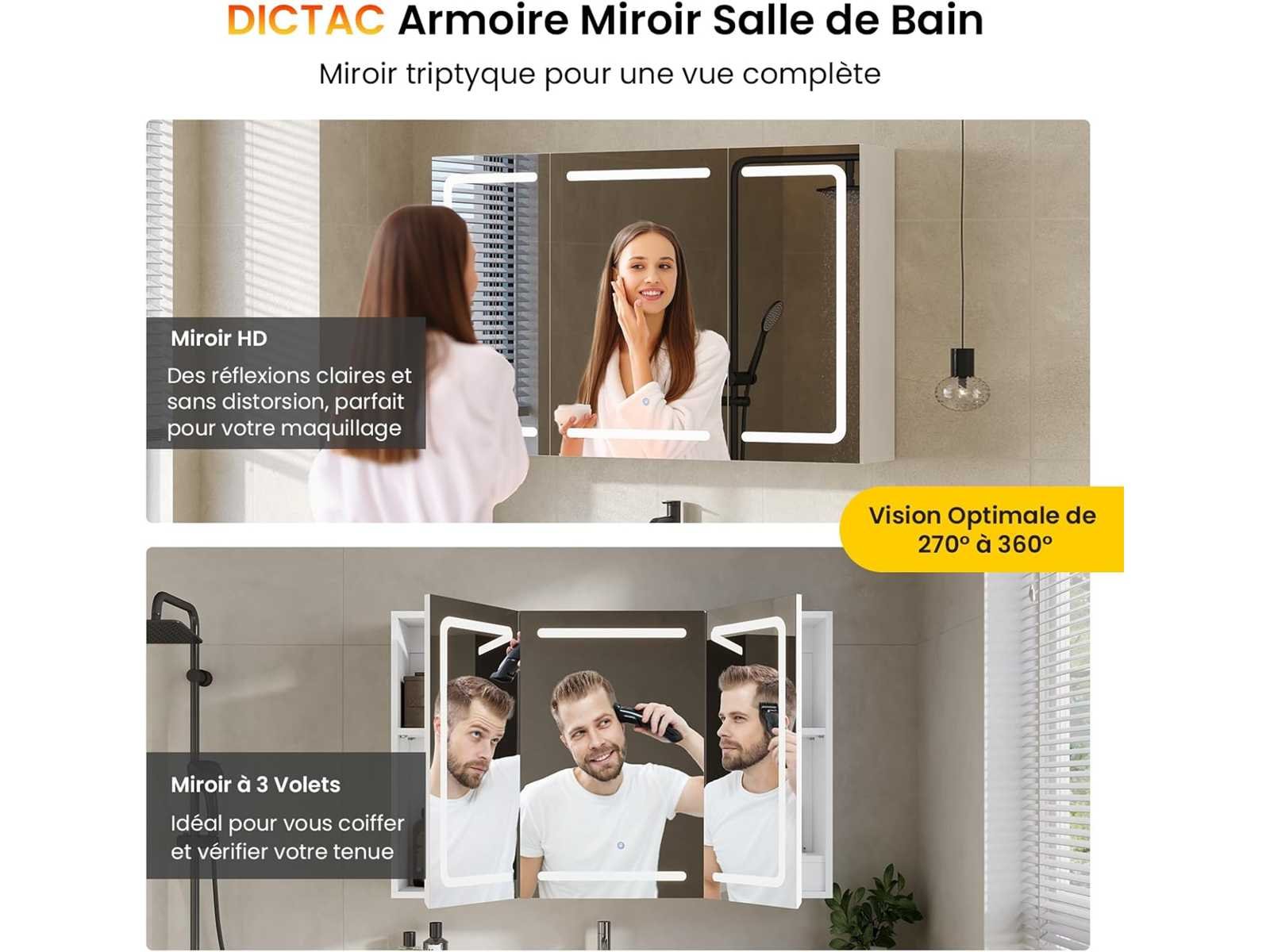 Merknaam DICTAC Kleur Wit Aanbevolen toepassingen voor boven de wastafel, boven het toilet, medicijnen, handdoeken, cosmetica Productafmetingen: 16P x 100W x 60H centimeter Speciale functie 3-vouwspiegel biedt optimaal zicht van 270° tot 360°, vochtbestendig, ingebouwd laadstation, met LED-verlichting instelbaar in 3 kleuren, verstelbare plank 3-vouwspiegel die optimaal zicht biedt van 270° tot 360°, vochtbestendig, ingebouwd laadstation, met LED-verlichting instelbaar in 3 kleuren, verstelbare plank Montagetype wandbeugel Deurstijl spiegeldeur Inbegrepen componenten: spiegelspiegelkast, montage-instructies, geïntegreerde stekkerdoos, accessoiretas, verstelbare plank spiegelspiegelkast, montage-instructies, geïntegreerde stekkerdoos, accessoiretas, verstelbare plank Afwerkingstype: poedercoating Maat 100x60x16cm Non