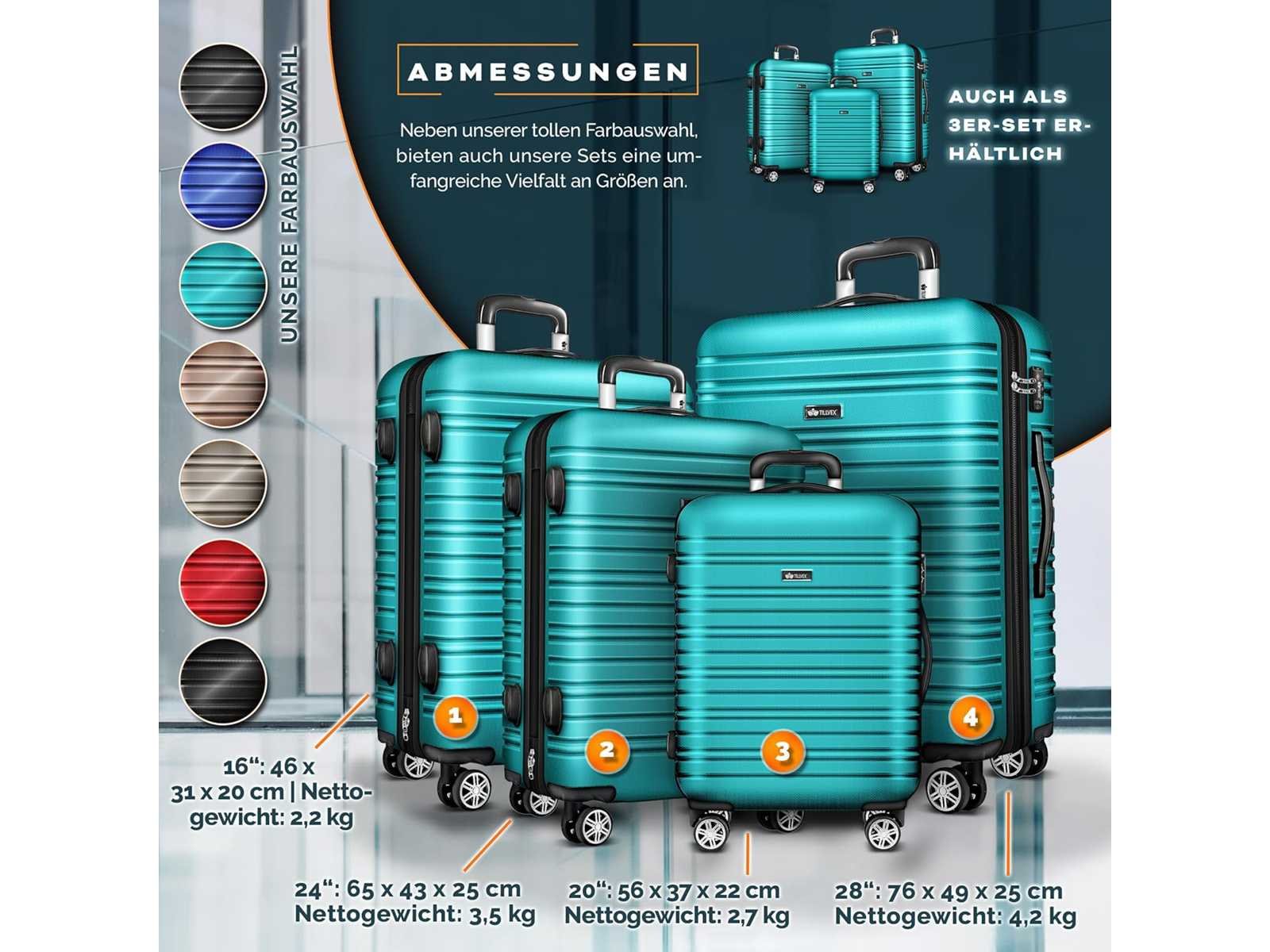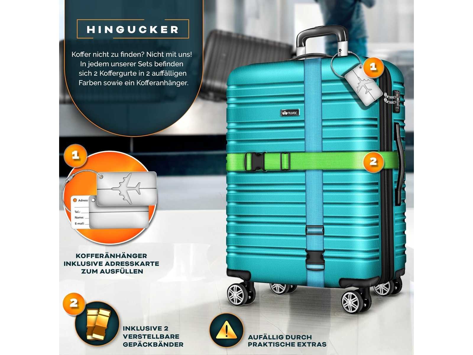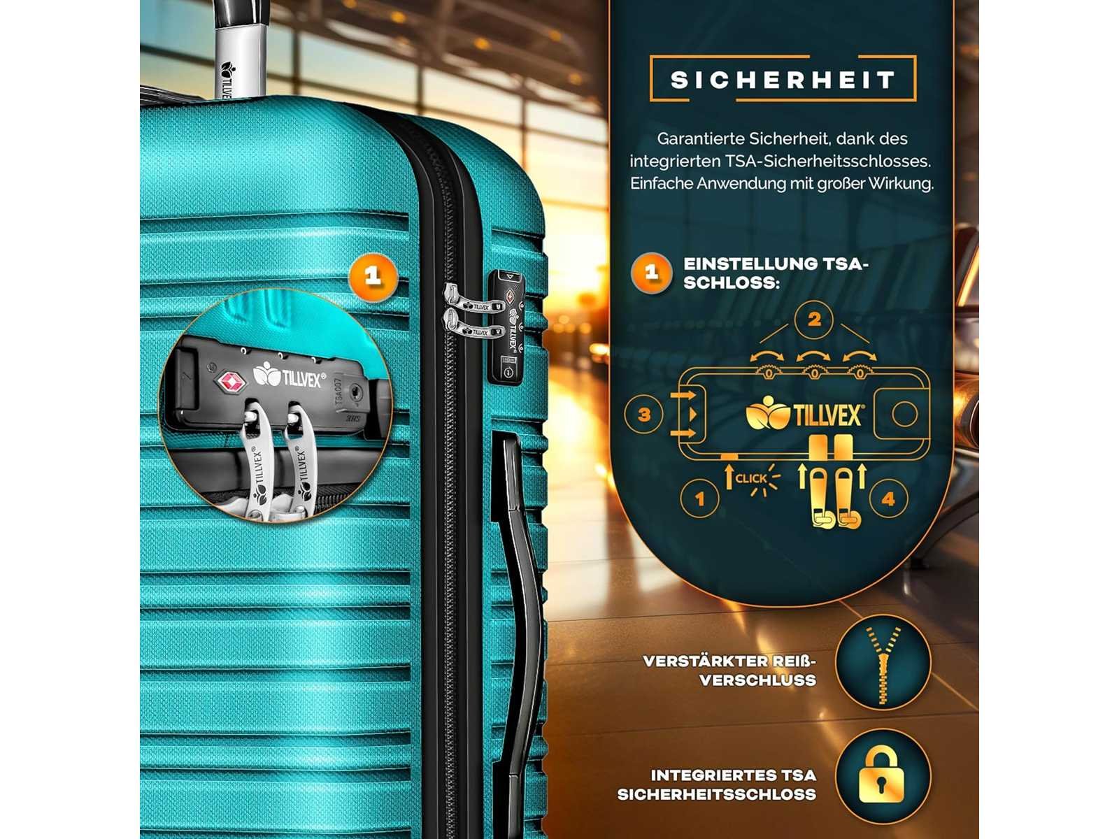 ABS hardshell voor optimale bescherming: Onze set van 4 Tillvex reiskoffers op wielen is gemaakt van zeer flexibel, impact- en krasbestendig ABS plastic. Speciaal ontworpen hoekbeschermers en plastic voeten zorgen voor extra sterkte en bescherming voor je bagage. Ruimtebesparing: Harde koffers in de maten S, M, L en XL (maat M = handbagage) kunnen eenvoudig worden genesteld, waardoor de opslagruimte maximaal wordt en je aan al je reisbehoeften wordt aangepast. Een praktische bagageset voor je reizen. Optimaal comfort: Tillvex-koffers zijn uitgerust met een in hoogte verstelbaar telescoophandvat, twee plastic handgrepen en 360° draaibare wielen. Dit betekent dat ze maximaal comfort en moeiteloze mobiliteit bieden, zelfs op de drukste luchthavens. Geïntegreerd TSA-slot: Elke koffer op wiel is uitgerust met een geïntegreerd TSA-slot waarin de rits wordt gestoken. Dit zorgt ervoor dat je bagage altijd volledig beschermd is. Praktische accessoires: Naast de hoogwaardige hardside-koffers bevat onze set handige accessoires zoals bagagelabels (4 stuks), bagagebanden (8 stuks) voor elke koffer en een bagageweegschaal. Dit maakt identificatie eenvoudiger en voorkomt extra kosten. Non